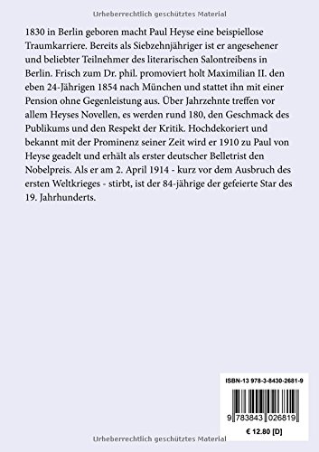 Paul Heyse: Novellen vom Gardasee Erstdruck: J. G. Cotta'sche Buchhandlung Nachfolger G. m. b. H. Stuttgart und Berlin 1902 Inhaltsverzeichnis Novellen vom Gardasee Gefangene Singvögel Die Macht der Stunde San Vigilio Entsagende Liebe Eine venezianische Nacht Antiquarische Briefe Biographie Neuausgabe mit einer Biographie des Autors. Herausgegeben von Karl-Maria Guth. Berlin 2018. Umschlaggestaltung von Thomas Schultz-Overhage unter Verwendung des Bildes: Franz Richard Unterberger, Am Gardasee, um 1870. Gesetzt aus der Minion Pro, 11 pt. Über den Autor: 1830 in Berlin geboren macht Paul Heyse eine beispiellose Traumkarriere. Bereits als Siebzehnjähriger ist er angesehener und beliebter Teilnehmer des literarischen Salontreibens in Berlin. Frisch zum Dr. phil. promoviert holt Maximilian II. den eben 24-Jährigen 1854 nach München und stattet ihn mit einer Pension ohne Gegenleistung aus. Über Jahrzehnte treffen vor allem Heyses Novellen, es werden rund 180, den Geschmack des Publikums und den Respekt der Kritik. Hochdekoriert und bekannt mit der Prominenz seiner Zeit wird er 1910 zu Paul von Heyse geadelt und erhält als erster deutscher Belletrist den Nobelpreis. Als er am 2. April 1914 - kurz vor dem Ausbruch des ersten Weltkrieges - stirbt, ist der 84-jährige der gefeierte Star des 19. Jahrhunderts.