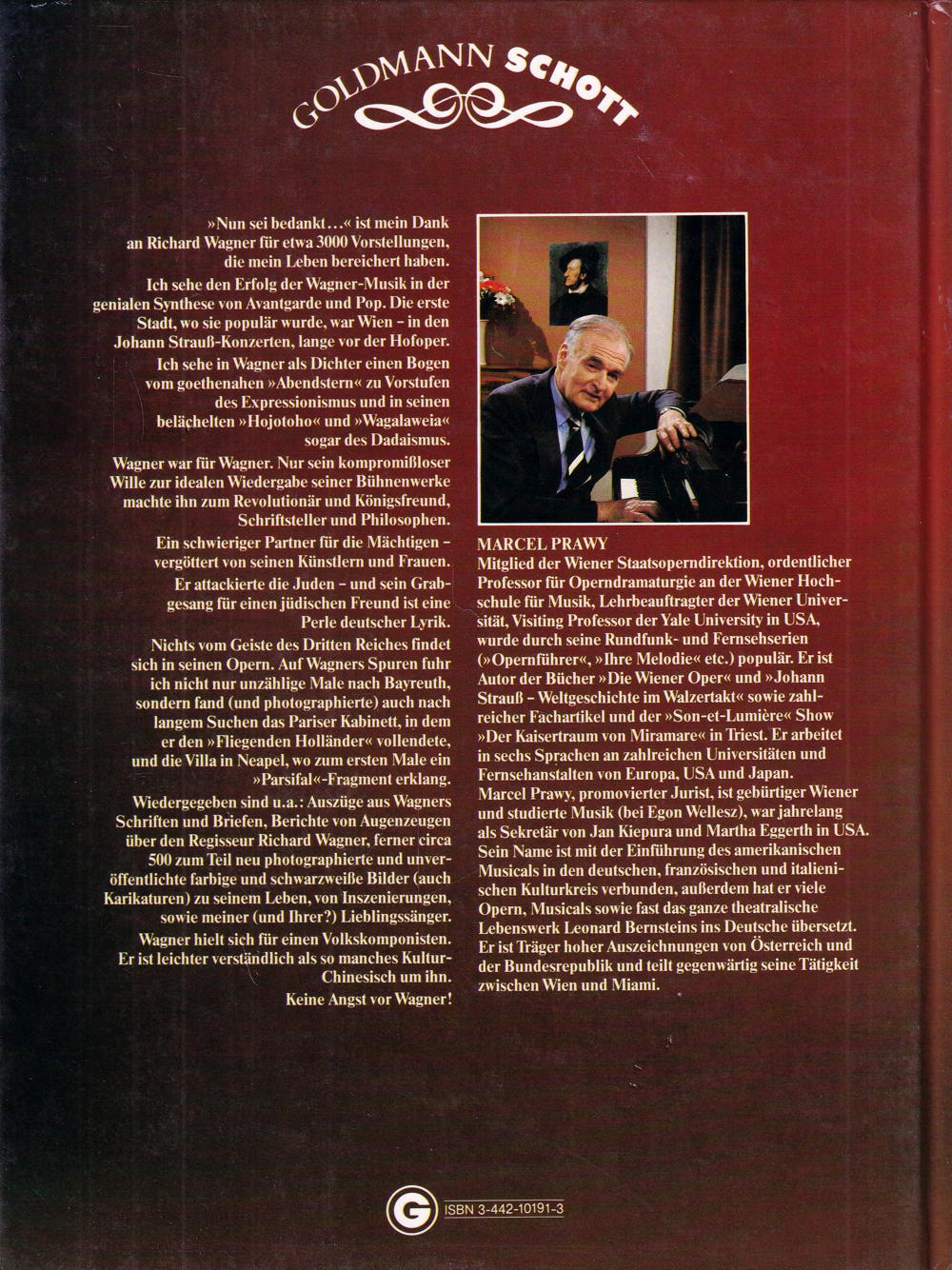 Wiedergegeben sind u. A.: Auszüge aus Wagners Schriften und Briefen, Berichte von Augenzeugen über den Regisseur Richard Wagner, ferner circa 500 zum Teil neu photographierte und unveröffentlichte farbige und schwarzweisse Bilder (auch Karikaturen) zu seinem Leben, von Inszenierungen, sowie meiner (und Ihrer?) Lieblingssänger.
