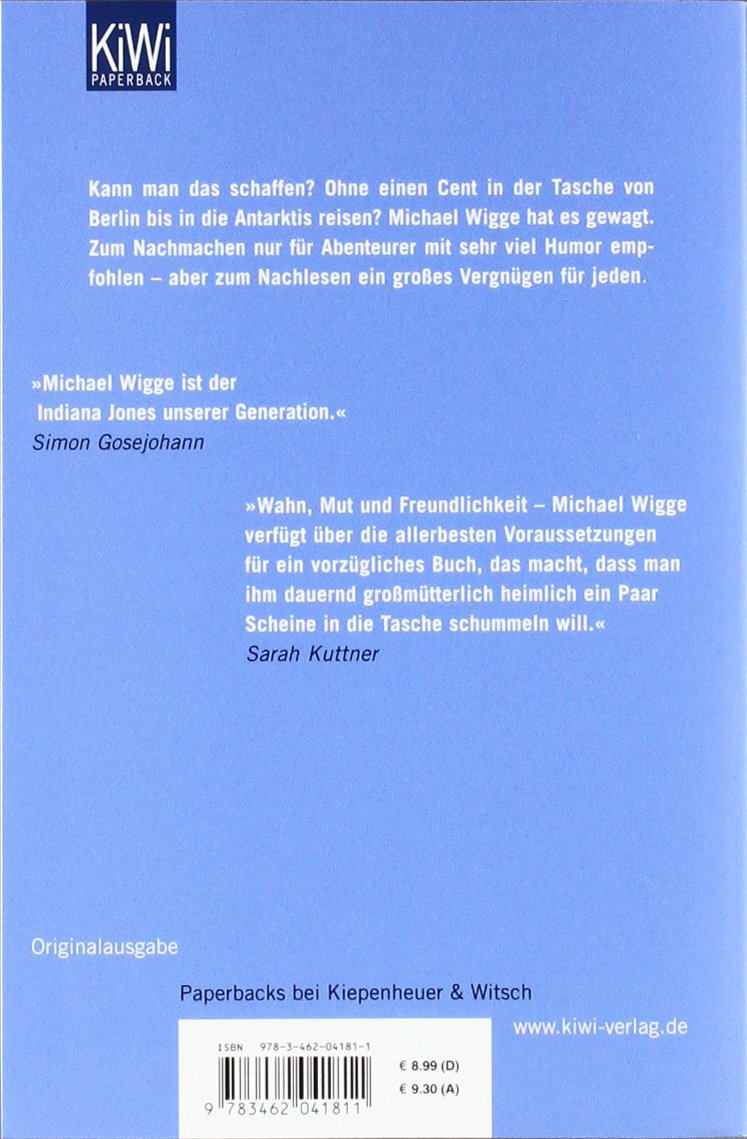 Kann man das schaffen? Ohne einen Cent in der Tasche von Berlin bis in die Antarktis reisen? Michael Wigge hat es erprobt: zum Nachmachen nur für Abenteurer mit sehr viel Humor empfohlen - aber zum Nachlesen ein Riesenspaß für alle.Am Anfang sieht es nach einem Kinderspiel aus: In Belgien wird er auf dem Schiff, das ihn nach Kanada bringen soll, freundlich begrüßt und in eine Luxuskabine geführt - bis sich rausstellt, dass er kein zahlender Passagier ist. Ab da heißt es Schiffsgeländer streichen, Container inspizieren, Dosen zählen. Und Karaoke singen mit den Filipinos an Bord. Über Montreal gelangt er in die USA. Dort übernachtet er in einem Amish-Dorf (in einer Scheune) und bekommt eine Bibel geschenkt - und ein Fahrrad. Damit durchquert er Ohio, bis er es schließlich gegen ein Busticket nach New Mexico eintauschen kann. In einem uralten Mustang fährt er über die Route 66 nach Las Vegas, wo er in einem Hotel übernachten kann. Aber nach einer Woche geht es weiter: Nach Los Angeles und San Francisco (dann kommt ein unvorhergesehener, aber nicht unwillkommener Schlenker nach Hawaii dazu), durch Mexiko, Mittelamerika und den ganzen südamerikanischen Kontinent bis in die Antarktis. Dabei bleibt ihm wenig erspart, denn jeden Tag muss er auf fremde Leute zugehen, um etwas zu essen und zu trinken und um einen Platz zum Schlafen zu bekommen.Michael Wigge erzählt von Couch-Surfern, Freeganism-Anhängern und amerikanischen Eisenbahn-Vagabunden, die eigentlich seit John Steinbeck als ausgestorben gelten. Er nimmt den Leser mit auf eine ungewöhnliche und unterhaltsame Reise, die beweist, dass die Welt doch nicht schlecht und vieles möglich ist, wenn man ein klares Ziel hat.