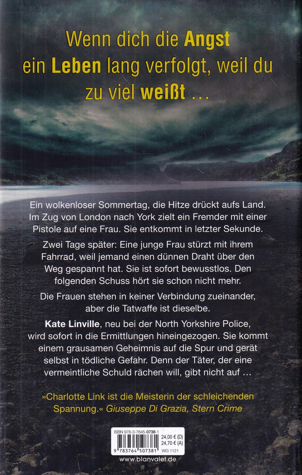 Wenn dich die Angst dein Leben lang verfolgt, weil du zu viel weisst …Ein wolkenloser Sommertag, die Hitze drückt aufs Land. Im Zug von London nach York zielt ein Fremder mit einer Pistole auf eine Frau. Sie entkommt in letzter Sekunde. Zwei Tage später: Eine junge Frau stürzt mit ihrem Fahrrad, weil jemand einen dünnen Draht über den Weg gespannt hat. Sie ist sofort bewusstlos. Den folgenden Schuss hört sie schon nicht mehr. Die Frauen stehen in keiner Verbindung zueinander, aber die Tatwaffe ist dieselbe. Kate Linville, neu bei der North Yorkshire Police, wird sofort in die Ermittlungen hineingezogen. Sie kommt einem grausamen Geheimnis auf die Spur und gerät selbst in tödliche Gefahr. Denn der Täter, der eine vermeintliche Schuld rächen will, gibt nicht auf...