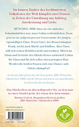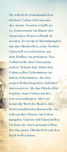 Im bunten Zauber des berühmtesten Volksfestes der Welt kämpfen zwei Frauen in Zeiten der Umwälzung um Aufstieg, Anerkennung und Liebe. Der grosse Frauenroman zum grössten Fest der Welt. In diesem Jahr gehen wir mit dem grossen ARD-Mehrteiler »Oktoberfest 1900« auf die Wiesn und feiern ein mitreissendes Lesefest mit diesem Roman. München, 1900: Dass sie ein einfaches Schankmädchen war, muss Colina verheimlichen. Denn jetzt ist sie aufgestiegen zur Gouvernante der jungen, eigenwilligen Clara. Deren Vater, der Brauereimagnat Prank, strebt nach Macht und Einfluss auf dem Oktoberfest. Auch Claras Verheiratung soll dabei helfen. Aber Clara will sich seinen Befehlen nicht unterordnen. Trotz Colinas Warnung flieht sie von zu Hause. Der Skandal droht alles zu zerstören. Doch dann entwickelt Colina mitten im Glanz und Getriebe des Oktoberfestes einen gewagten Plan: für sich und Clara will sie eine neue Chance aufs Glück erkämpfen. »Das Oktoberfest ist ein überwältigender Ort, an dem man in einen Strudel gerät, der einem den Atem nimmt. «