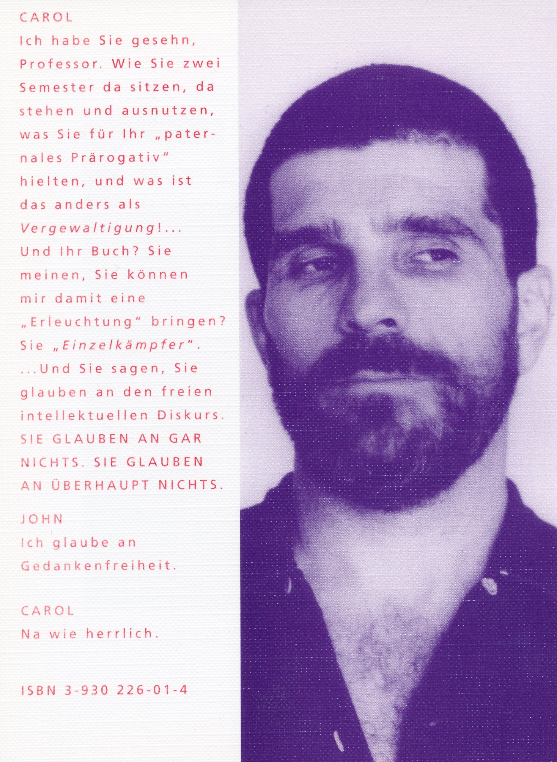Ich habe Sie gesehn, Professor. Wie Sie zwei Semester da sitzen, da stehen und ausnutzen, was Sie für Ihr "patern ales Prärogativ" hielten, und was ist d as anders als Vergewaltigung!..