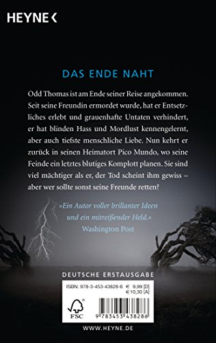 Odd Thomas ist am Ende seiner Reise angekommen. Seit seine Freundin ermordet wurde, hat er Entsetzliches erlebt und grauenhafte Untaten verhindert, er hat blinden Hass und Mordlust kennengelernt, aber auch tiefste menschliche Liebe. Nun kehrt er zurück in seinen Heimatort Pico Mundo, wo seine Feinde ein letztes blutiges Komplott planen. Sie sind viel mächtiger als er, der Tod scheint ihm gewiss – aber wer sollte sonst seine Freunde retten?