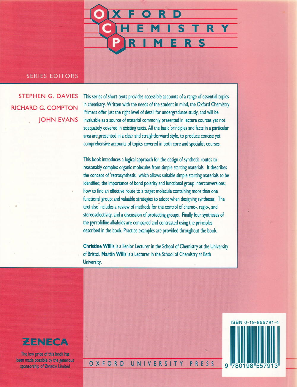 This practical book uses a wide range of examples in a versatile approach to the design of effective syntheses. Retrosynthetic analysis-a method of identifying simple starting materials for a synthesis-is introduced with emphasis on the importance of bond polarity and functional group interconversions. The next section discusses how an effective route to a target molecule containing more than one functional group can be followed, while later chapters review methods for the control of chemo-, regio-, and stereoselectivity, and include a discussion of protecting groups. Finally, four syntheses of pyrrolidine alkaloids are compared using previously described principles.