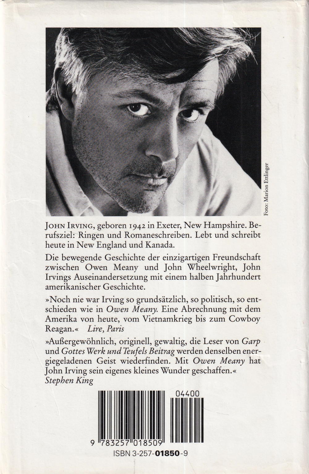 John (Winslow) Irving, geboren am 2. März 1942 in Exeter, im Staat New Hampshire, als ältestes von vier Kindern. John Irvings Vater war Lehrer und Spezialist für russische Geschichte und Literatur. Seine Kindheit verbrachte Irving in Neuengland. 1957 begann er mit dem Ringen; 19jährig wusste Irving, was er werden wollte: Ringer und Romancier. Studium der englischen Literatur an den Universitäten von New Hampshire und Iowa, wo er später Gastdozent des Schriftsteller-Workshops war. Deutschkurs in Harvard. 1963-1964 Aufenthalt in Wien. 1964 Rückkehr in die Vereinigten Staaten. Arbeit als Lehrer an Schule und Universität bis 1979. Lebt heute in Toronto und im südlichen Vermont. 1992 wurde Irving in die National Wrestling Hall of Fame in Stillwater, Oklahoma, aufgenommen, 2000 erhielt er einen Oscar für die beste Drehbuchadaption für seinen von Lasse Hallström verfilmten Roman Gottes Werk und Teufels Beitrag.