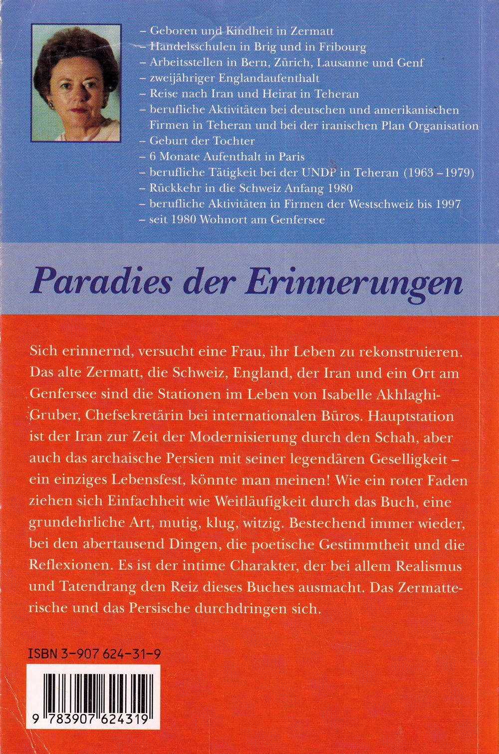 Das alte Zermatt, die Schweiz, England, der Iran und ein Ort am Genfersee sind die Stationen im Leben von Isabelle Akhlaghi-Gruber, Chefsekretärin bei internationalen Büros. Hauptstation ist der Iran zur Zeit der Modernisierung durch den Schah, aber auch das archaische Persien mit seiner legendären Geselligkeit - ein einziges Lebensfest, könnte man meinen! Wie ein roter Faden ziehen sich Einfachheit wie Weitläufigkeit durch das Buch, eine grundehrliche Art, mutig, klug, witzig. Bestechend immer wieder, bei den abertausend Dingen, die poetische Gestimmtheit und die Reflexionen. Es ist der intime Charakter, der bei allem Realismus und Tatendrang den Reiz dieses Buches ausmacht. Das Zermatterische und das Persische durchdringen sich.