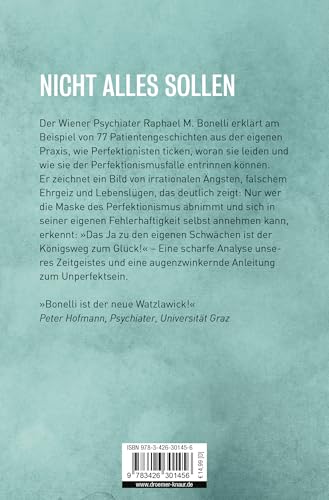Perfektionismus ist die Modekrankheit unserer Zeit, sagt der Wiener Psychiater Raphael M. Bonelli in seiner brillant geschriebenen Gesellschaftsanalyse, die zugleich eine augenzwinkernde »Anleitung« zum Unperfektsein ist. Selten war ein psychologisches Sachbuch so aktuell: Perfektionismus ist eine Psychologie der Ängste, Lebenslügen und überzogenen Anspruchshaltungen. »Ob in der Erziehung, der Ehe oder im Job – immer wollen wir alles richtig machen. Und dabei auch noch gut aussehen. Doch oft scheitern wir an den eigenen Ansprüchen. « In seinem psychologischen Ratgeber schildert Raphael Bonelli in über 50 teils tragikomischen, teils erschütternden Patienten-Geschichten aus der eigenen Praxis, wie Perfektionisten ticken. Der Wiener Psychiater zeichnet ein Bild heutiger Seelennöte, von Ängsten, falschem Ehrgeiz und Lebenslügen, um aufzuzeigen, dass glücklich ist, wer sich in seiner ganzen Fehlerhaftigkeit, Durchschnittlichkeit und Gewöhnlichkeit selbst annehmen kann. Zutreffender kann eine Psychologie für den Alltag nicht sein!