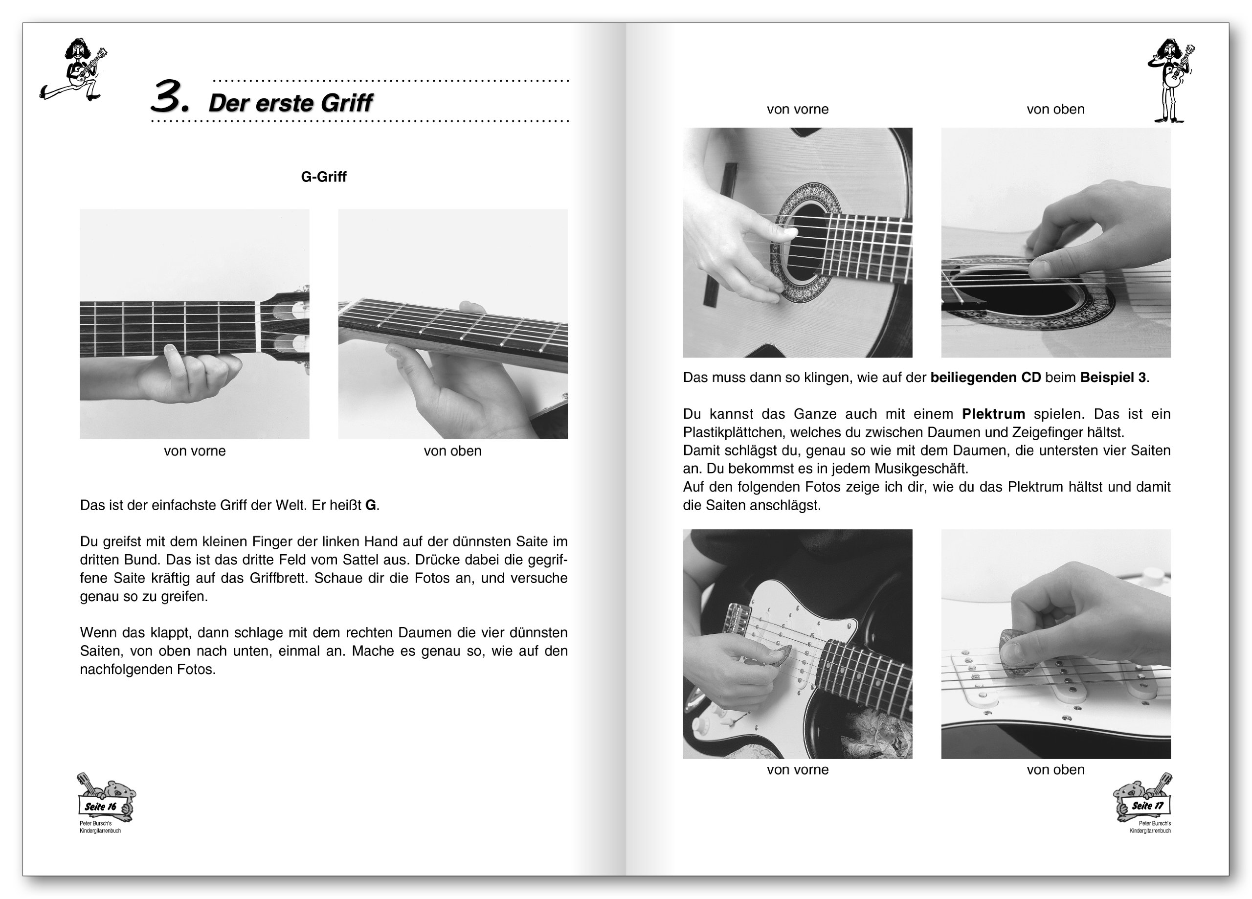 Im wahrsten Sinne des Wortes kinderleicht vermittelt Peter Bursch mit diesem speziell für Kinder konzipierten Gitarrenbuch die wichtigsten Grundlagen des Gitarrenspiels. Der Verzicht auf das Notenlesen, die spielerische Umsetzung des Lehrstoffes und nicht zuletzt die schöne Liedauswahl zeichnen Peter Bursch's Kinder-Gitarrenbuch aus und sorgen für viel Spass! Die beiliegende Mitspiel-CD begleitet die kleinen Gitarristen in einem anfängergerechten Tempo, so dass bereits nach kurzer Zeit das erste Lied gespielt werden kann. Peter Bursch setzt dabei auf schnelle Lernerfolge, damit die Motivation erhalten bleibt. Für alle, die gerne mit Kindern musizieren wollen!