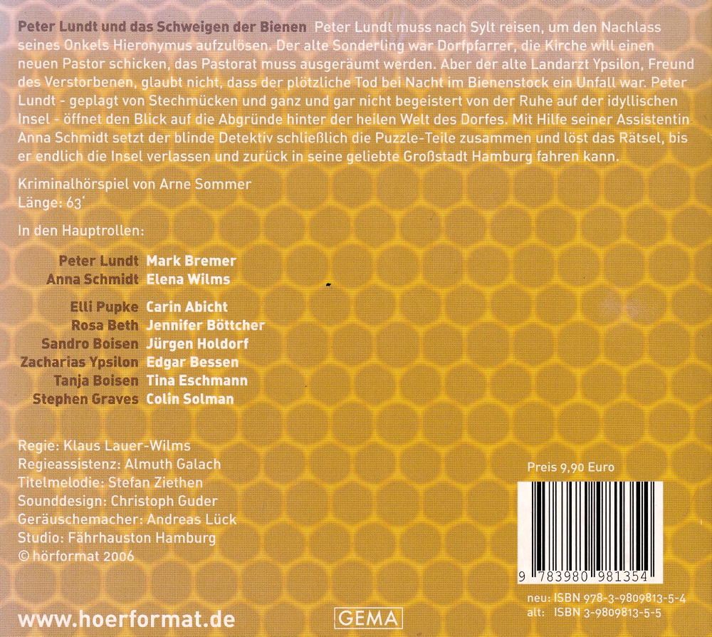 Peter Lundt muss nach Sylt reisen, um den Nachlass seines Onkels Hieronymus aufzulösen. Der alte Sonderling war Dorfpfarrer, die Kirche will einen neuen Pastor schicken, das Pastorat muss ausgeräumt werden. Aber der alte Landarzt Ypsilon, Freund des Verstorbenen, glaubt nicht, dass der plötzliche Tod bei Nacht im Bienenstock ein Unfall war. Peter Lundt- geplagt von Stechmücken und ganz und gar nicht begeistert von der Ruhe auf der idyllischen Insel - öffnet den Blick auf die Abgründe hinter der heilen Welt des Dorfes. Mit Hilfe seiner Assistentin Anna Schmidt setzt der blinde Detektiv schliesslich die Puzzle-Teile zusammen und löst das Rätsel, bis er endlich die Insel verlassen und zurück in seine geliebte Grossstadt Hamburg fahren kann.