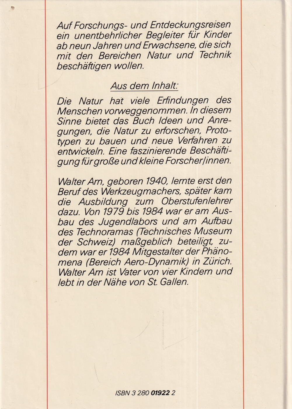 Die Natur hat viele Erfindungen des Menschen vorweggenommen. In diesem Sinne bietet das Buch ldeen und Anregungen, die Natur zu erforschen, Prototypen zu bauen und neue Verfahren zu entwickeln. Eine faszinierende Beschäftigung für grosse und kleine Forscherlinnen.