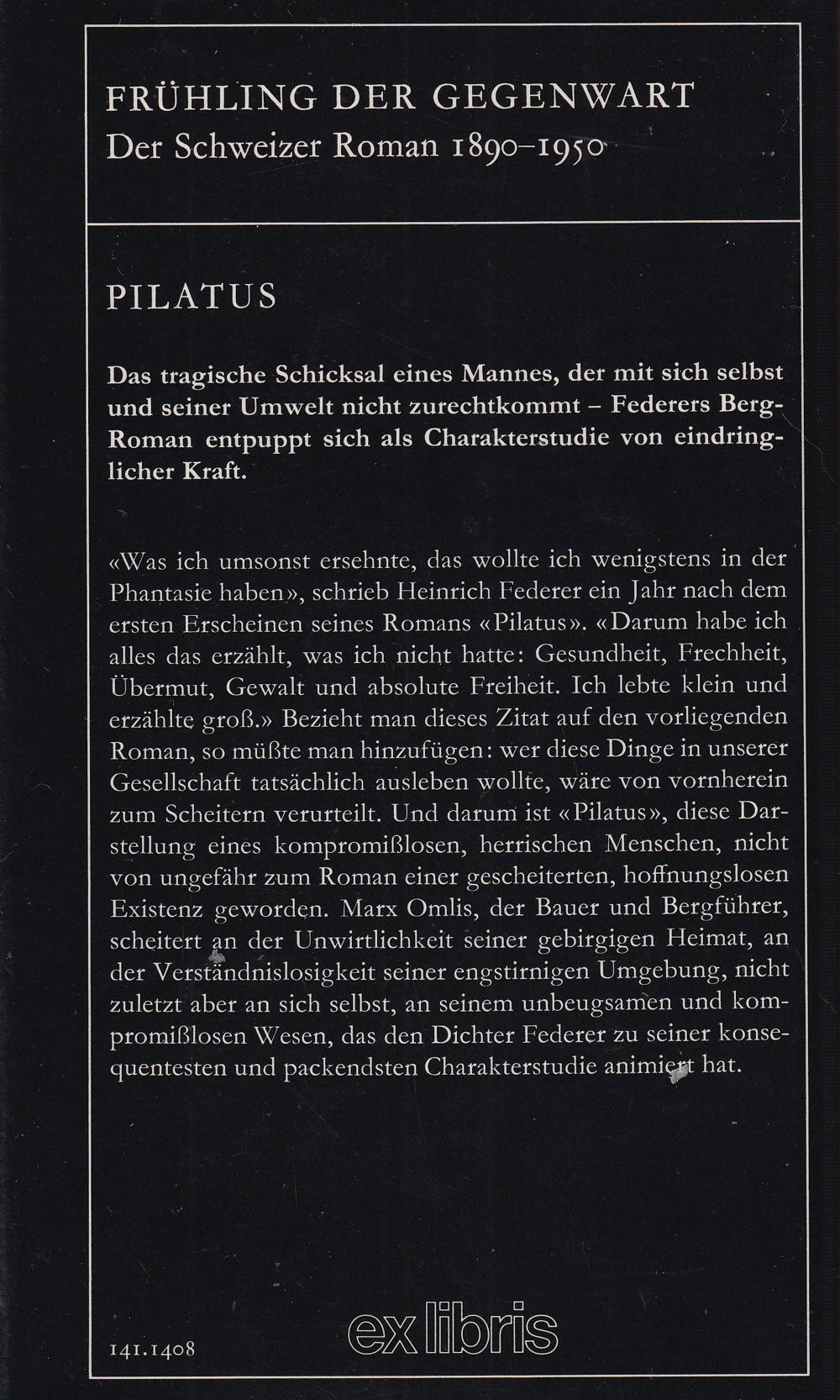 Das tragische Schicksal eines Mannes, der mit sich selbst und seiner Umwelt nicht zurechtkommt – Federers Berg-Roman entpuppt sich als Charakterstudie von eindringlicher Kraft.