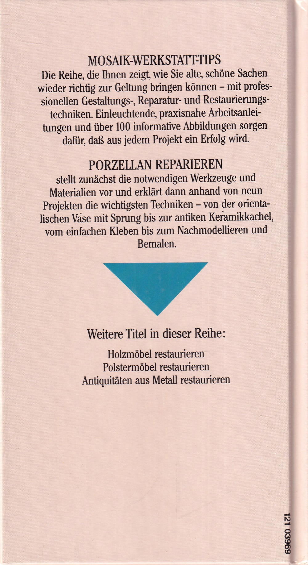MOSAIK-WERKSTATT-TIPS Die Reihe, die Ihnen zeigt, wie Sie alte, schöne Sachen wieder richtig zur Geltung bringen können – mit professionellen Gestaltungs-, Reparatur- und Restaurierungstechniken. Einleuchtende, praxisnahe Arbeitsanleitungen und über 100 informative Abbildungen sorgen dafür, dass aus jedem Projekt ein Erfolg wird.