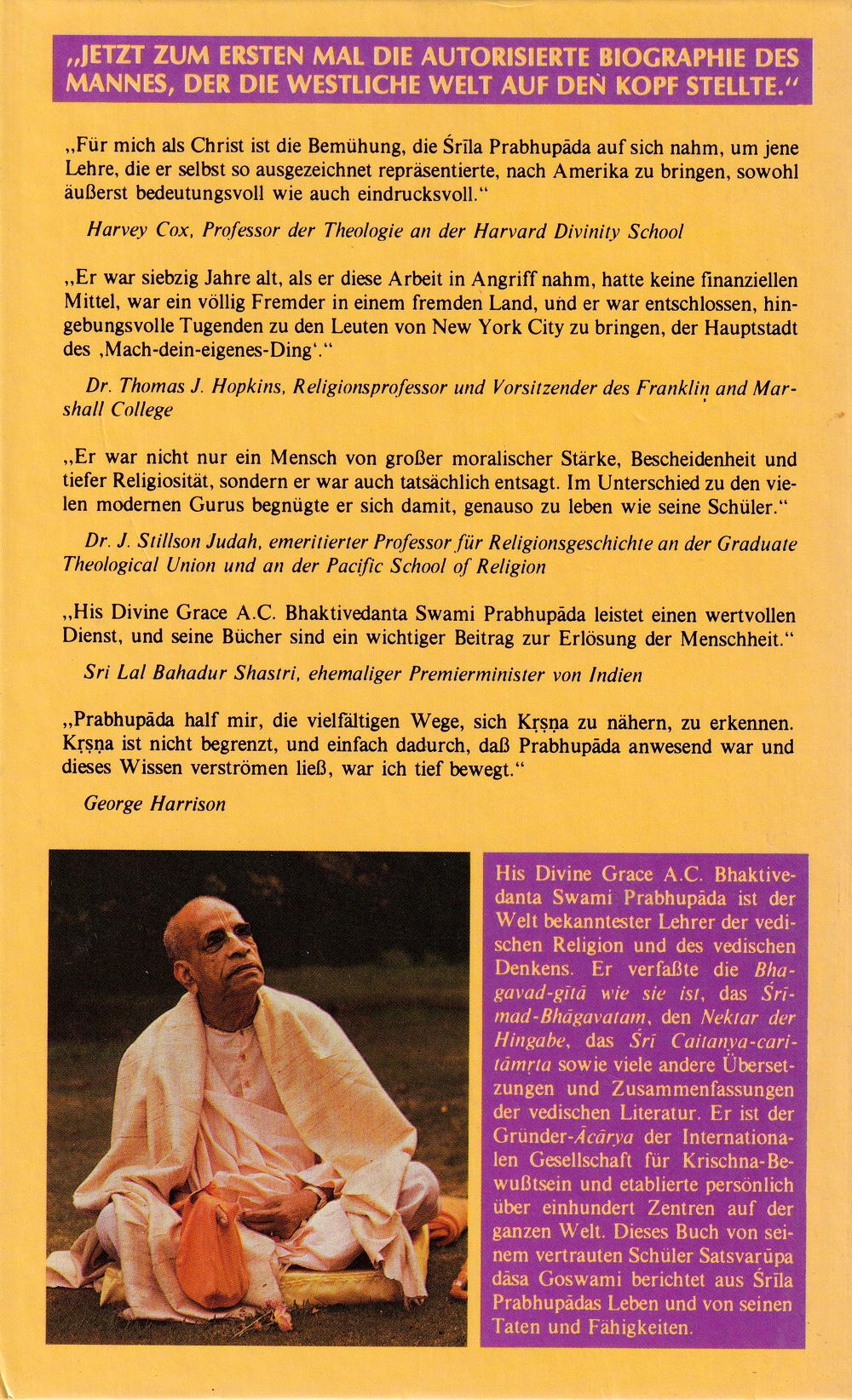 "Für mich als Christ ist die Bemühung, die ŚrĪla Prabhupāda auf sich nahm, um jene Lehre, die er selbst so ausgezeichnet repräsentierte, nach Amerika zu bringen, sowohl äusserst bedeutungsvoll wie auch eindrucksvoll." Harvey Cox, Professor der Theologie an der Harvard Divinity School