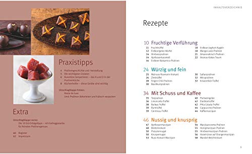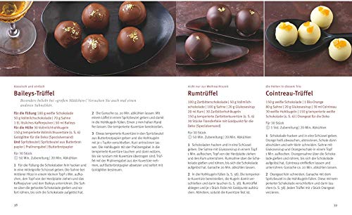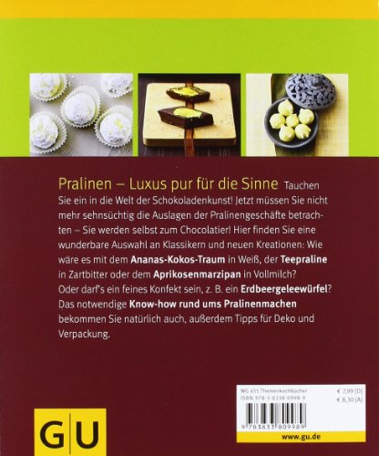 Zartschmelzende, dunkel glänzende Kostbarkeiten! Pralinen und Konfekt sind einfach kleine, süsse Schätze, nach denen sich jeder die Finger leckt. Pralinen liegen einfach im Trend. Und was in feinen Schokoboutiquen verheissungsvoll in Glasvitrinen lockt, lässt sich auch ganz einfach zu Hause, in der eigenen Küche herstellen. Kaum zu glauben, aber wahr: Klassische Champagnertrüffel, knuspriges Krokant-Marzipan und ungewöhnliche Kreationen wie Erdbeer-Balsamico-Pralinés kann jeder mit den passenden Rezepten, dem richtigen Zubehör und ein wenig Fingerspitzengefühl leicht selber machen. Ob handgeformt, geschnitten, in Hohlkugeln oder Herzformen gefüllt - es gibt Rezepte für Anfängerinnen und Pralinenprofis. Lauter Schokoschätzchen zum Verschenken oder selber naschen. Und wer Freunde mit selbst gemachtem Naschwerk beglücken möchte, findet zusätzliche Tipps, zum Verzieren und Verpacken von Pralinen.