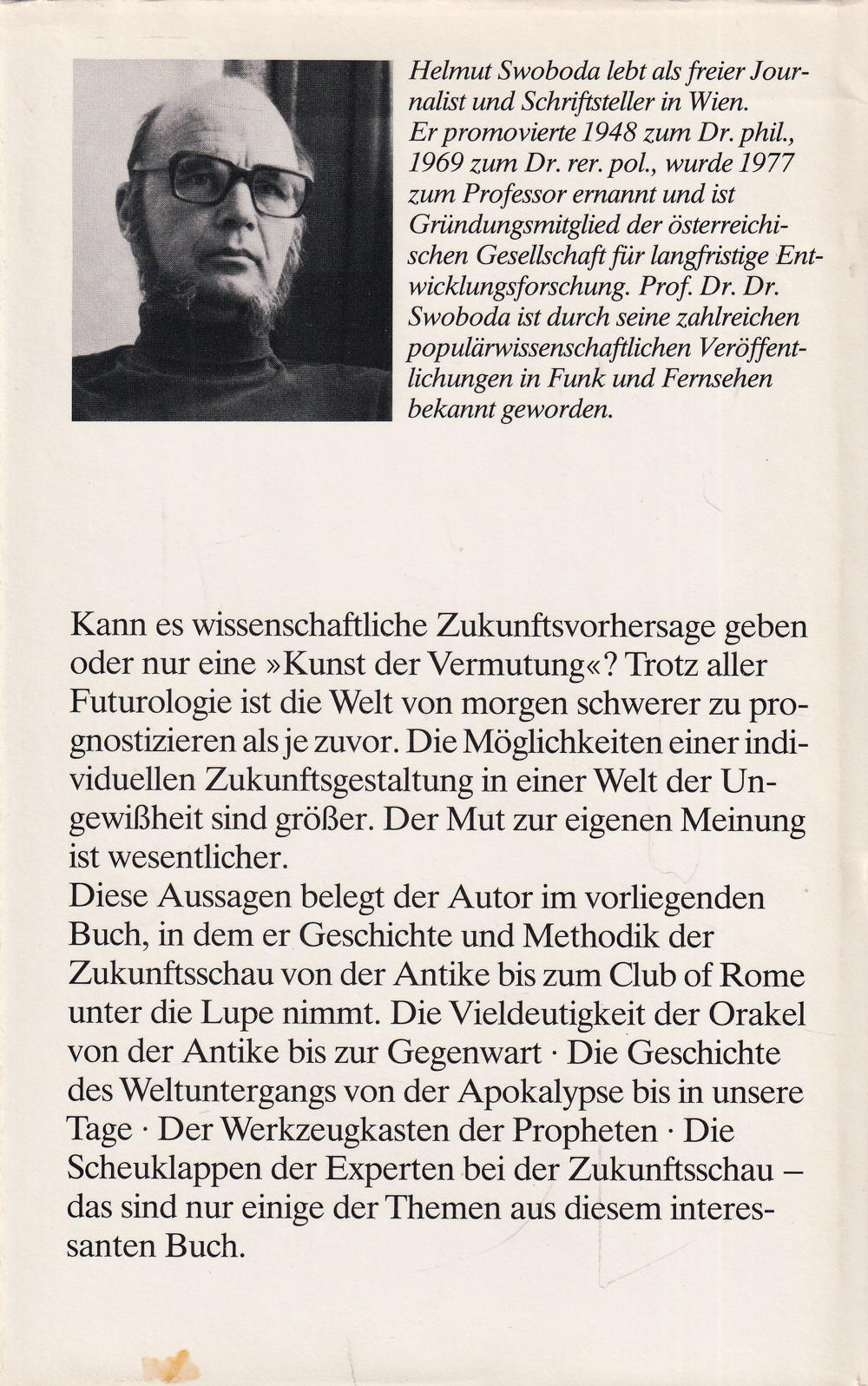 Kann es wissenschaftliche Zukunftsvorhersage geben oder nur eine »Kunst der Vermutung«? Trotz aller Futurologie ist die Welt von morgen schwerer zu prognostizieren als je zuvor. Die Möglichkeiten einer individuellen Zukunftsgestaltung in einer Welt der Ungewissheit sind grösser. Der Mut zur eigenen Meinung ist wesentlicher.