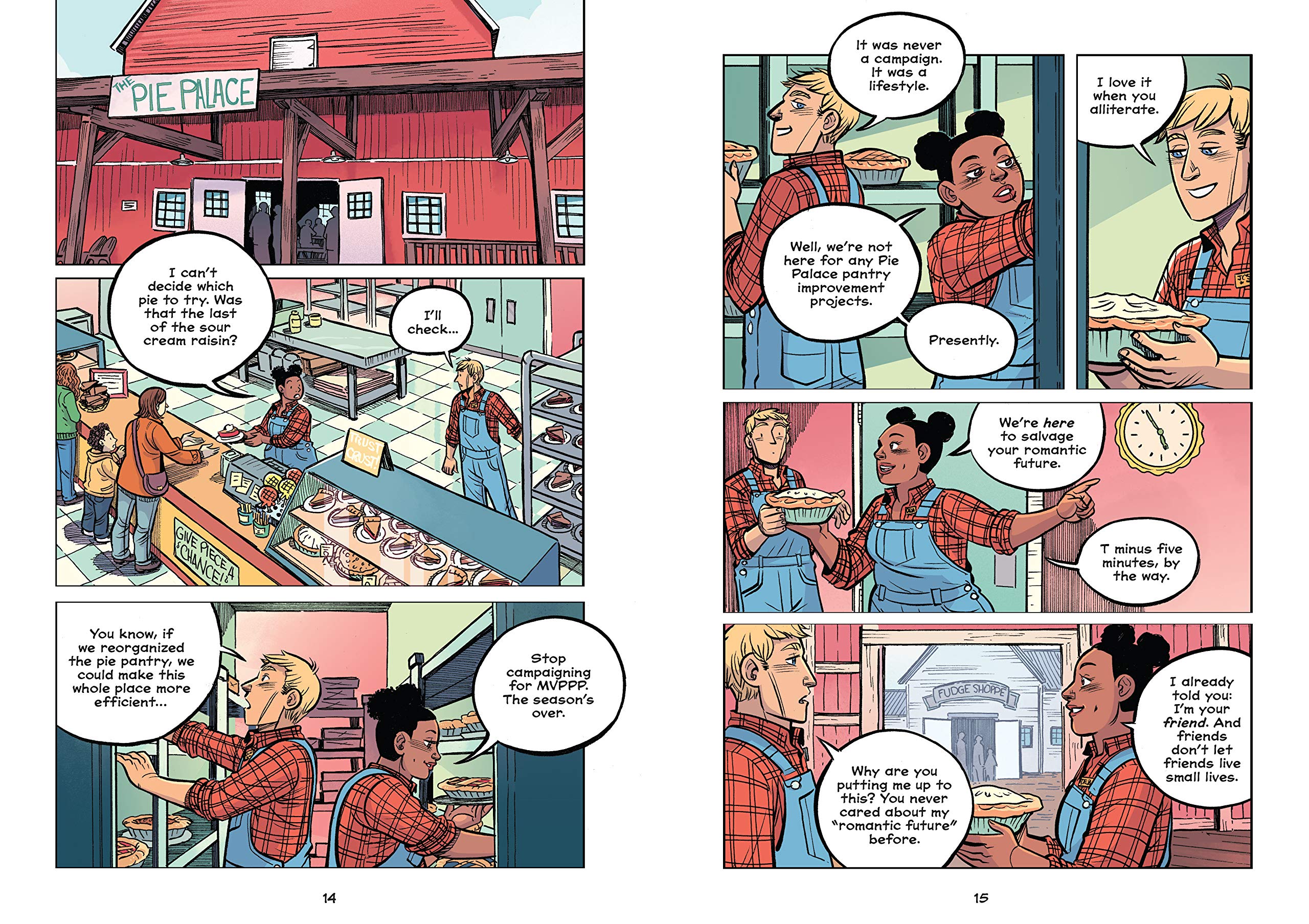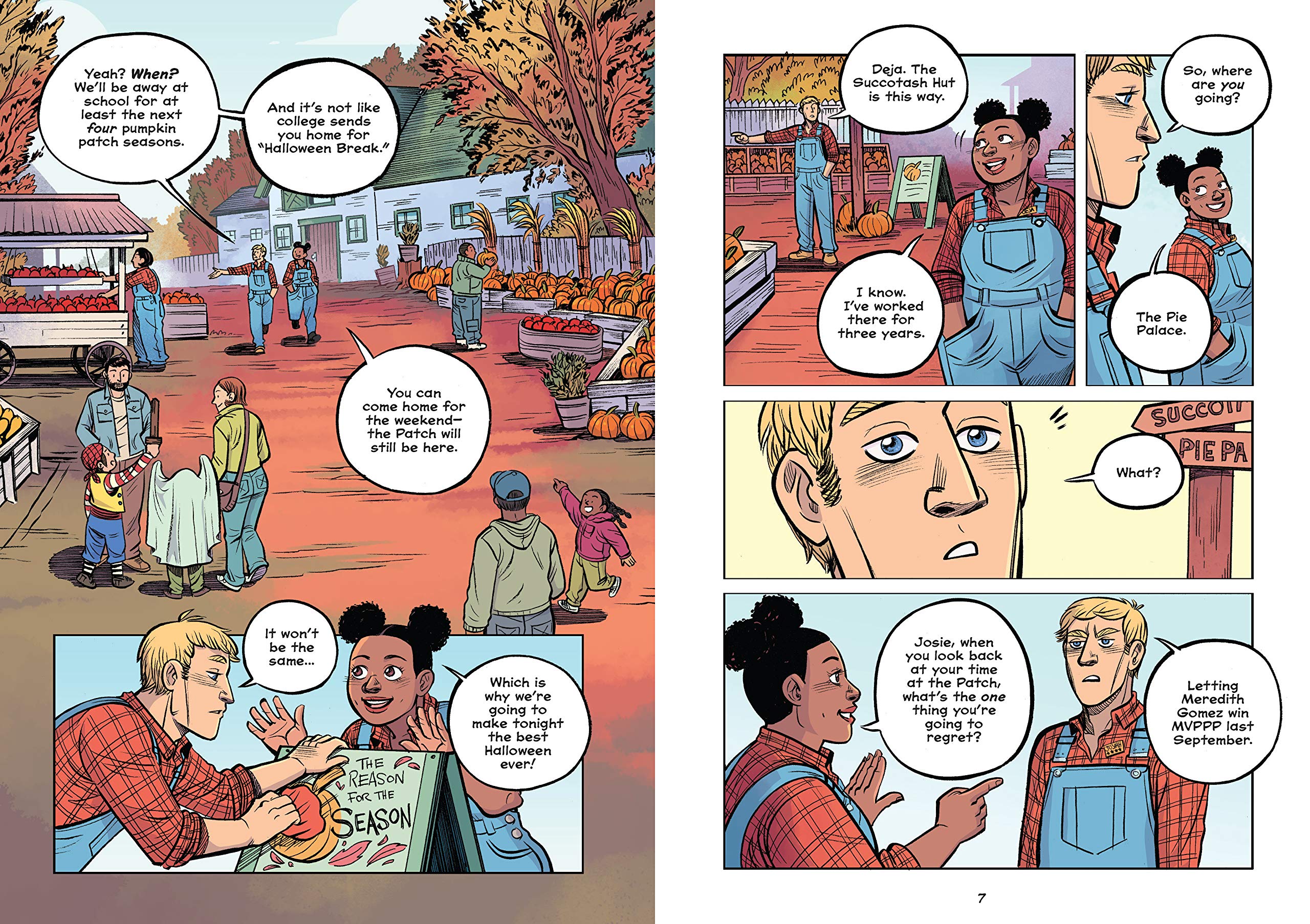 Bestselling author Rainbow Rowell and Eisner Award–winning artist Faith Erin Hicks have teamed up to create Pumpkinheads: a smart and swoony Rainbow Rowell romance in full colour graphic novel form, about two teens discovering what it means to leave behind a place – and a person – with no regrets. Deja and Josiah are seasonal best friends. Every autumn, all through high school, they’ve worked together at the best pumpkin patch in the whole wide world (not many people know that the best pumpkin patch in the whole wide world is in Omaha, Nebraska, but it definitely is). They say goodbye every Halloween, and they’re reunited every September. But this Halloween is different – Josiah and Deja are finally seniors, and this is their last season at the pumpkin patch. Their last shift together. Their last goodbye. Josiah’s ready to spend the whole night feeling melancholy about it. Deja isn’t ready to let him. She’s got a plan: what if instead of moping, they went out with a bang? They could see all the sights! Taste all the snacks! And Josiah could finally talk to that cute girl he’s been mooning over for three years...What if their last shift was an adventure?