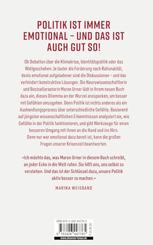 Egal ob bei Debatten über die Klimakrise, über Identitätspolitik oder das Weltgeschehen: Politik ist nichts anderes als ein Aushandlungsprozess über unterschiedliche Gefühle. In ihrem Debattenbuch fordert die Neurowissenschaftlerin und Bestsellerautorin Maren Urner, unser rationales Politikverständnis zu überdenken: Angesichts fortschreitender Krisen müssen wir endlich aufhören, Verstand und Emotionen voneinander zu trennen. Nur, wenn wir beides zusammendenken und danach handeln, können wir konstruktiv Politik gestalten. Wenn es um gesellschaftspolitische Debatten geht, dann erzählen wir uns seit jeher die gleiche Geschichte: Auf unsere Emotionen könnten und dürften wir uns nicht verlassen. Gefühle seien etwas Privates, das von der professionellen und politischen Ebene streng getrennt werden müsse. Psychologische, anthropologische und neurowissenschaftliche Studien allerdings widersprechen dieser Ansicht radikal: Alles, was im politischen Raum passiert, ist von Emotionen geprägt. Auch wenn wir uns sachliche Diskussionen wünschen, zeigt die Realität: Je lauter die Forderung nach Rationalität ist, desto irrationaler und emotional aufgeladener wird die Debatte. Wir werden immer und überall von unseren Emotionen mitbestimmt – Gefühle machen Politik. Wie kommen wir aus diesem Dilemma heraus? Alles fängt mit einer grundlegenden Einsicht an: Auch private Entscheidungen sind immer politisch – und weil wir direkt betroffen sind, reagieren wir emotional. Was wir essen, wie wir uns fortbewegen, wie wir wohnen und wie wir Erfolg definieren – all das hat immer eine politische Dimension.