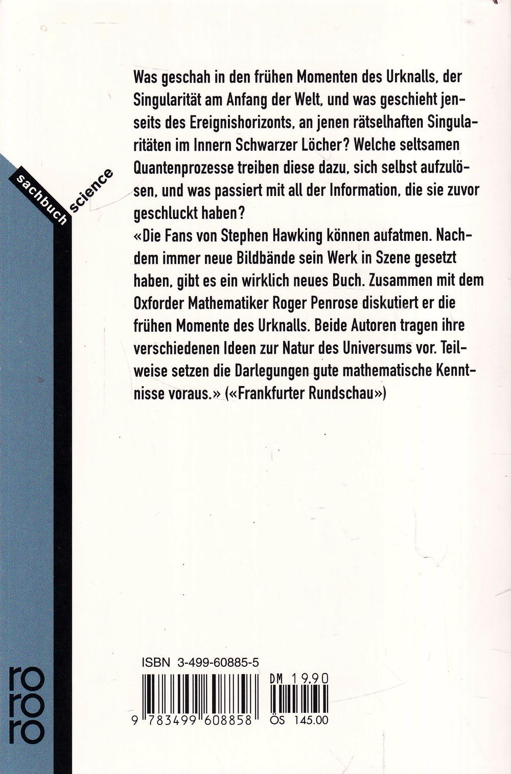 Wie ist unser Universum entstanden? Was geschah in den frühen Momenten des Urknalls, der Singularität am Anfang der Welt, und was geschieht jenseits des Ereignishorizonts, an jenen rätselhaften Singularitäten im Innern Schwarzer Löcher? Welche Rolle spielen dabei der "Pfeil der Zeit" und die "Schwarzen Löcher"? Stephen Hawking und Roger Penrose geben neue faszinierende Antworten auf die grundlegenden Fragen von Raum und Zeit.
