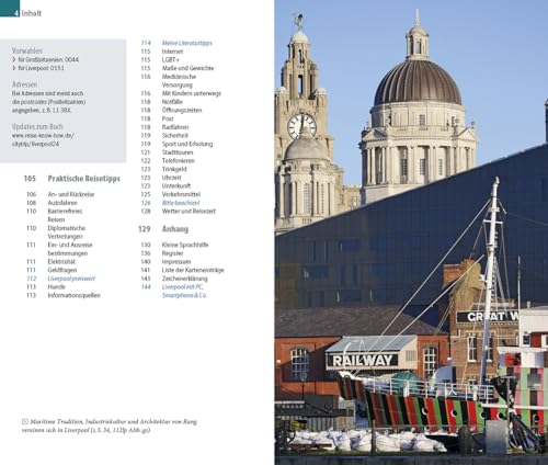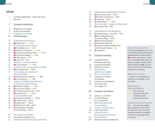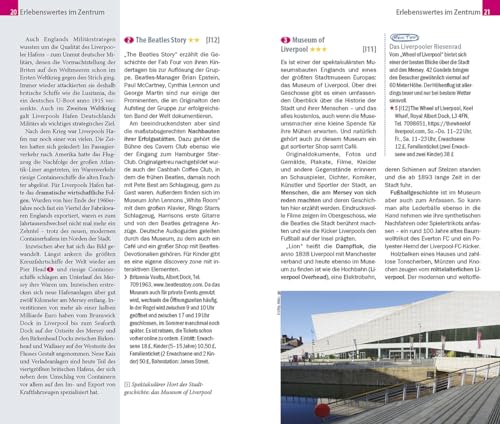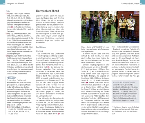 „Penny Lane is in my ears and in my eyes...“ – Millionen Musikfans pilgern jährlich nach Liverpool, um die Heimatstadt der Beatles zu erkunden. Der Wandel der einstigen Hafenmetropole zu einer modernen, kreativen Stadt ist überall spürbar, etwa im zum Kulturareal umgestalteten Albert Dock. Mit dem FC Liverpool und dem Everton FC sind hier zudem gleich zwei bekannte Fussballclubs zuhause. Zum Afternoon Tea werden in den Cafés der Hope Street Scones serviert und abends brodelt in den Pubs des Cavern Quarter das Leben. Am Pier Head laden die berühmten Mersey-Fähren zu einer Rundfahrt ein. Lohnenswert ist auch ein Ausflug nach Southport mit seinen viktorianischen Arkaden, idyllischen Parks und kilometerlangen Sandstränden. Dieser aktuelle Stadtführer ist der ideale Begleiter, um alle Seiten der Metropole am River Mersey selbstständig zu entdecken: Die wichtigsten Sehenswürdigkeiten und Museen der Stadt sowie weniger bekannte Attraktionen und Viertel ausführlich vorgestellt und bewertet Faszinierende Architektur: Tudorstil, viktorianische Perlen und moderne Baukunst Abwechslungsreicher Stadtspaziergang Erlebnisvorschläge für einen Kurztrip Ausflüge zum Knowsley Safari Park und nach Southport Shoppingtipps vom Bauernmarkt bis zu ausgefallenen Shops Die besten Lokale der Stadt und allerlei Wissenswertes über die britische Küche Tipps für die Abend- und Nachtgestaltung: die pulsierende Club-, Pub- und Musikszene von Beat und Rock bis Punk und Indie Das Liverpool der Beatles Liverpool zum Durchatmen: Wavertree Botanic Garden, Croxteth Hall and Country Park, Sefton Park, Stanley Park Ausgewählte Unterkünfte für jeden Geldbeutel Alle praktischen Infos zu Anreise, Preisen, Stadtverkehr, Touren, Events, Hilfe im Notfall...Hintergrundartikel mit Tiefgang: Geschichte, Mentalität der Bewohner, Leben in der Stadt...