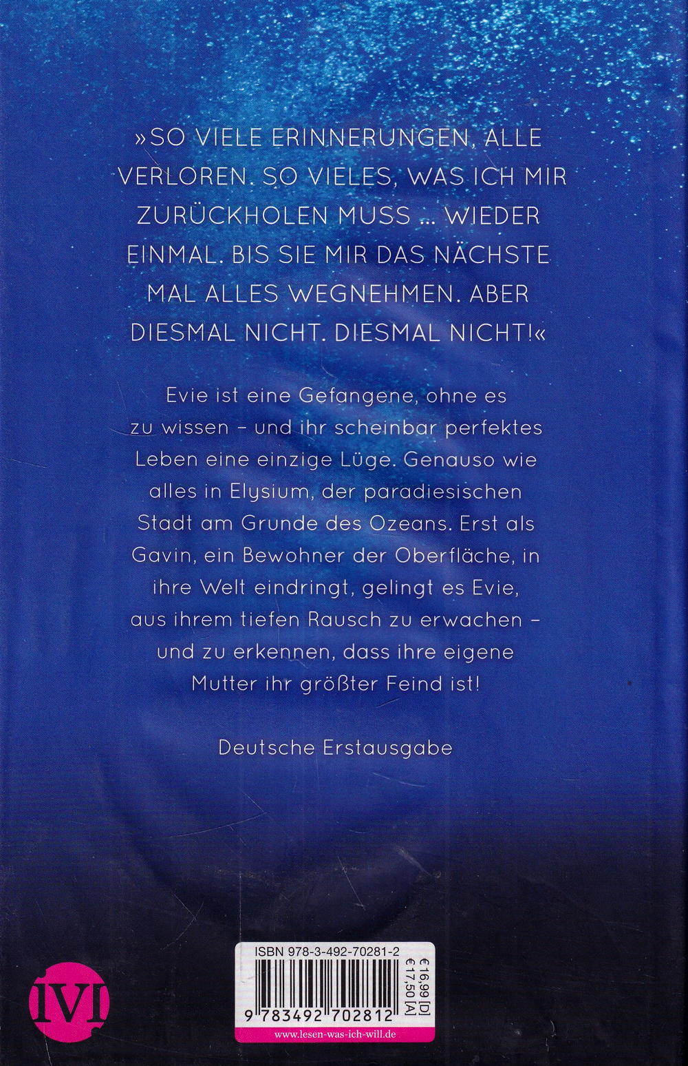 Evies Leben ist perfekt perfekt geplant und überwacht von Mutter, der Herrscherin über die Unterwasserstadt Elysium. Schon bald soll die 16-Jährige über die geheimnisvolle Welt regieren. Doch als sie sich ausgerechnet in ihren Feind verliebt, wird klar, dass das perfekte Leben in Elysium eine einzige Lüge ist.