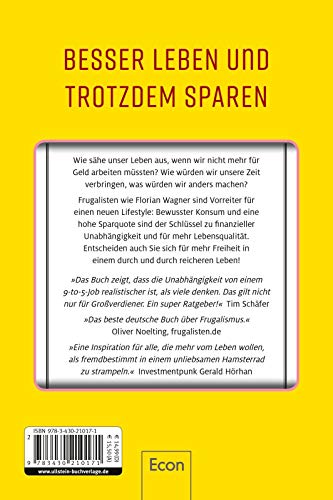 Florian Wagner ist seit fünf Jahren Frugalist: Sein Ziel ist, mit 40 Jahren finanziell unabhängig zu sein. Dafür legt er möglichst viel seines Einkommens zurück und investiert es langfristig. In seinem Buch erklärt er, wie er seine Lebensqualität durch bewussteren Konsum steigert, wie er seine Ausgaben effektiv kontrolliert und wie man sein Leben mehr nach seinen eigenen Vorstellungen ausrichten kann. Schon heute ermöglicht ihm dieser Lifestyle, sich unabhängiger von seiner Erwerbstätigkeit zu machen und sich auf das zu konzentrieren, was ihm Freude bereitet. Gleichzeitig hat er sein Ziel fest im Blick: im Alter von 40 Jahren völlig frei über seine Zeit zu bestimmen. In seinem Buch erklärt er, wie Lebensqualität und Sparquote zusammenhängen, was die wachsende Community der Frugalisten antreibt und welche Rolle Glück dabei spielt. Zudem verraten 14 Frugalisten ihre Strategien, wie man sein passives Einkommen erhöht, Finanzfehler vermeidet und wie man sein Geld geschickt anlegt - darunter erfolgreiche Selfmade-Millionäre, finanziell freie Unternehmer und ehemalige GeringverdienerInnen. Sie alle sprechen offen über ihre Erfolgsrezepte und Überzeugungen, durch die finanzielle Freiheit ganz ohne Lottogewinn oder Erbschaft Jahrzehnte vor dem gesetzlichen Renteneintritt möglich ist. Auch wer nicht so viel sparen kann oder nicht schon mit 40 aus dem Job aussteigen will, profitiert von den bewährten Tipps. Für mehr Freiheit in einem durch und durch reicheren Leben!