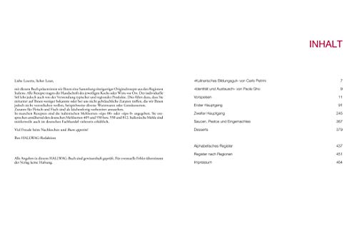 Mit den besten Rezepten aus den Regionen Italiens erscheint erstmals in deutscher Sprache die Ergänzung zum gastronomischen Ratgeber Osterie d Italia. Das Rezeptbuch zum Reiseführer umfasst über 600 typische und authentische Rezepte aus den Osterien Italiens: ursprünglich, natürlich und unter Verwendung regionaler Produkte - empfohlen und zusammengestellt im Sinne der Slow Food-Philosophie: Leichtes und Anspruchsvolles, Beliebtes und fast Unbekanntes, Übliches und schwer zu Findendes. Informative und unterhaltsame Kommentare zum Ursprung und oder Kuriosa ergänzen die Rezepte und machen die Sammlung zu einem unverzichtbaren Kompendium für alle Liebhaber ursprünglicher italienischer Küche.