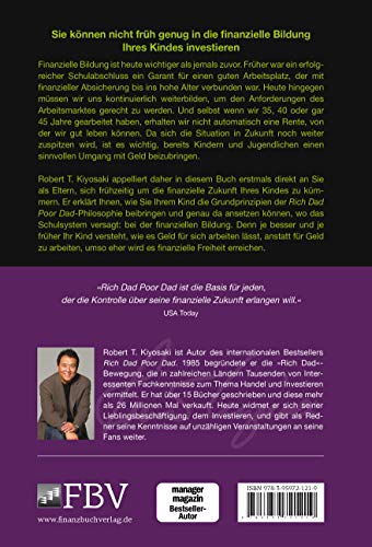 Finanzielle Bildung ist heute wichtiger als jemals zuvor. Früher war ein erfolgreicher Schulabschluss ein Garant für einen guten Arbeitsplatz, der mit finanzieller Absicherung bis ins hohe Alter verbunden war. Heute hingegen müssen wir uns kontinuierlich weiterbilden, um den Anforderungen des Arbeitsmarktes gerecht zu werden. Und selbst wenn wir 35, 40 oder gar 45 Jahre gearbeitet haben, erhalten wir nicht automatisch eine Rente, von der wir gut leben können. Da sich die Situation in Zukunft noch weiter zuspitzen wird, ist es wichtig, bereits Kindern und Jugendlichen einen sinnvollen Umgang mit Geld beizubringen. Robert T. Kiyosaki appelliert daher in diesem Buch erstmals direkt an Sie als Eltern, sich frühzeitig um die finanzielle Zukunft Ihres Kindes zu kümmern. Er erklärt Ihnen, wie Sie Ihrem Kind die Grundprinzipien der Rich Dad Poor Dad-Philosophie beibringen und genau da ansetzen können, wo das Schulsystem versagt: bei der finanziellen Bildung. Denn je besser und je früher Ihr Kind versteht, wie es Geld für sich arbeiten lässt, anstatt für Geld zu arbeiten, umso eher wird es finanzielle Freiheit erreichen.