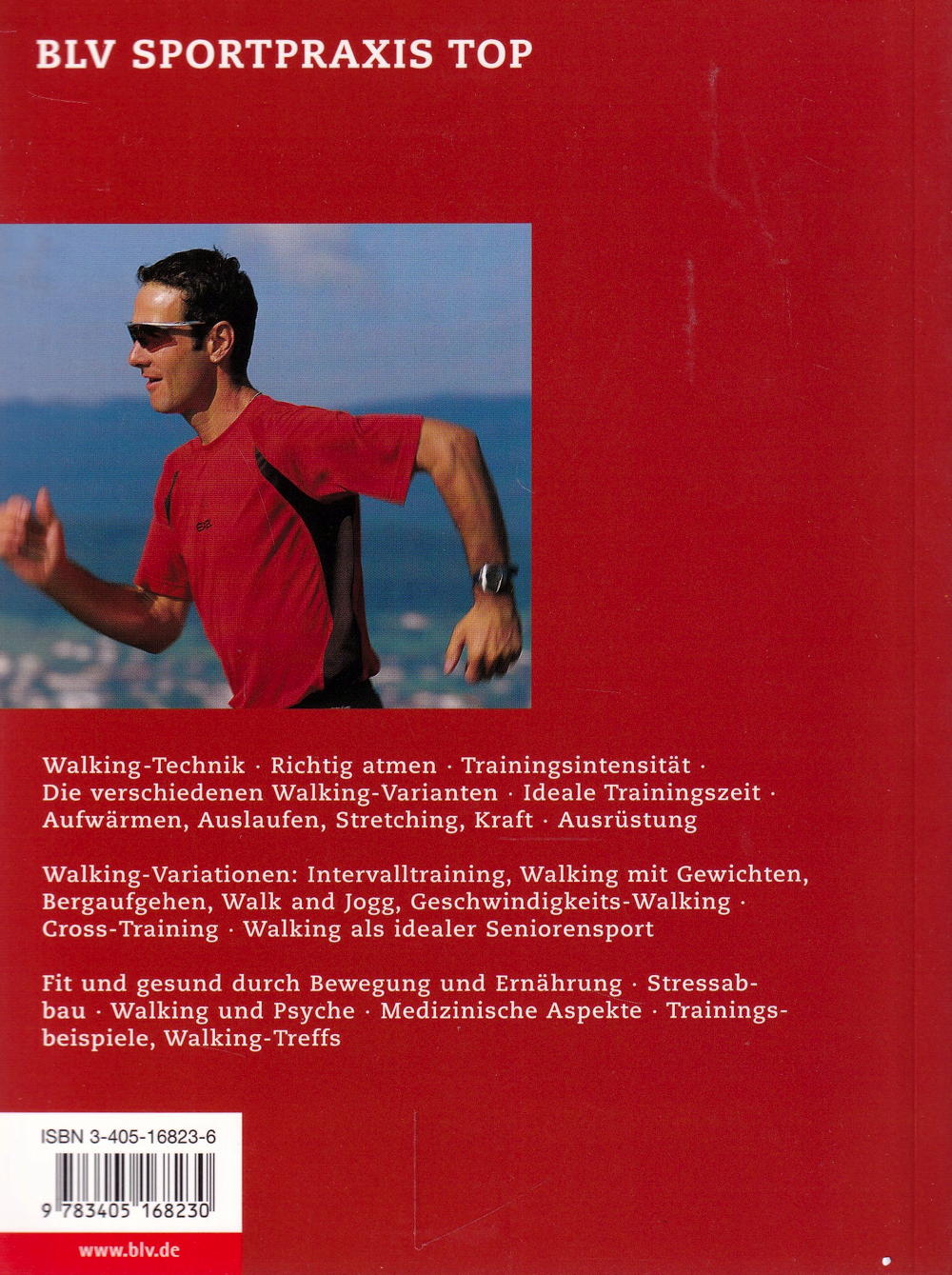 Aufwärmen, Auslaufen, Stretching, Kraft · Ausrüstung Walking-Variationen: Intervalltraining, Walking mit Gewichten, Bergaufgehen, Walk and Jogg, Geschwindigkeits-Walking Cross-Training Walking als idealer Seniorensport Fit und gesund durch Bewegung und Ernährung · Stressabbau - Walking und Psyche Medizinische Aspekte Trainingsbeispiele, Walking-Treffs