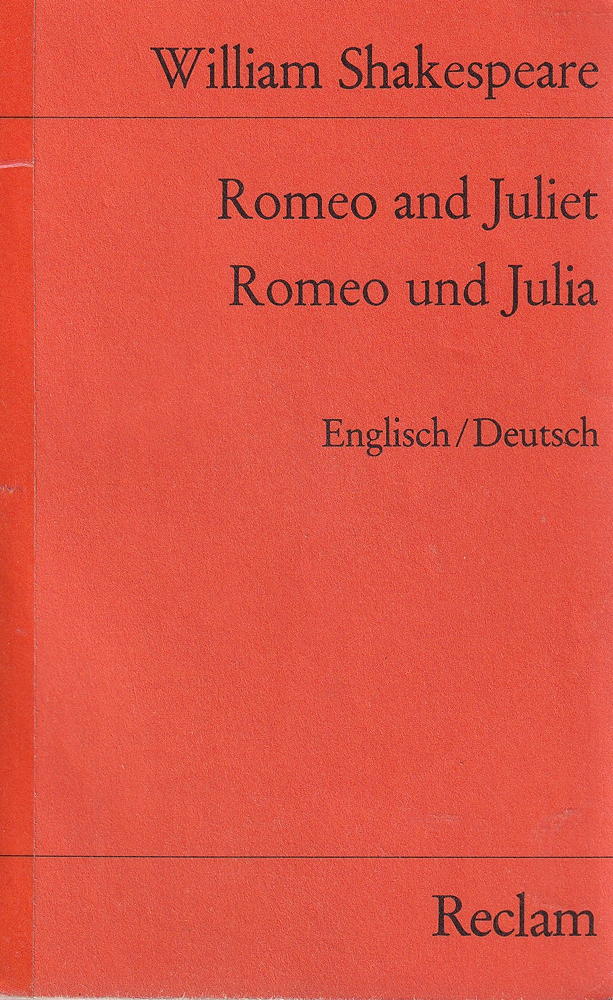 Diese Worte Julias an Romeo hat wohl jeder schon einmal gehört. Die Geschichte der beiden Liebenden aus Verona, die wegen einer Familienfehde nicht zusammenkommen konnten, ist dank William Shakespeare weltberühmt geworden. Immer wieder wird sie neu inszeniert, immer wieder reizt sie Film- und Theaterregisseure zu neuen Interpretationen. Hier ist sie in Deutsch/Englisch um zum Verständniss der beiden Sparchen beizutragen.