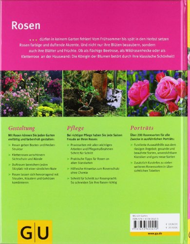 Der Verlag über das Buch Rosen dürfen in keinem Garten fehlen! Ob flächige Beetrosen, Hecken aus Wildrosen oder Kletterrosen an der Hauswand: Rosen begeistern Gartenanfänger wie Fortgeschrittene gleichermassen mit ihrer klassischen Schönheit. Die grosse Farbenvielfalt der Blüten, unterschiedliche Wuchsformen und Blührhythmen lassen viele Gestaltungs- und Kombinationsmöglichkeiten mit Stauden und anderen Begleitpflanzen zu. Zu Unrecht gelten Rosen in der Pflege als schwierig: Wer ein paar Grundregeln bei Pflege, Standortwahl, Düngung und Schnitt beachtet, hat lange Freude an seinen Rosen. Dieses Basiswissen wird im Praxisteil kompetent und anschaulich erläutert und abgebildet. Der Porträtteil mit über 200 der gängigsten und gesündesten Sorten gibt dem Leser einen Überblick über das riesige Angebot an Rosensorten und hilft bei der Auswahl, wobei sowohl unsterbliche Klassiker als auch ganz neue Rosensorten vorgestellt werden.