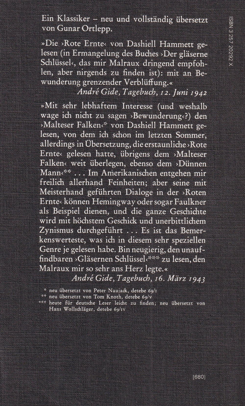 Dashiell Hammett, geboren 1894 in St. Mary's County (Maryland), verliess die Schule mit vierzehn Jahren, um mit Gelegenheitsarbeiten die Familie zu unterstützen. Danach arbeitete er acht Jahre lang in der berühmten Pinkerton National Detective Agency. Im Ersten Weltkrieg diente er in einem Sanitätskorps und erkrankte an Tuberkulose. Ab 1922 freier Schriftsteller und erfolgreicher Drehbuchschreiber. Dashiell Hammett starb 1961 in New York.