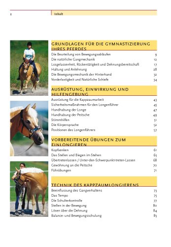 Nach wie vor steigt die Zahl der Pferde mit Rückenproblemen. Viele Reiter investieren ihr Geld in Tierarztrechnungen, doch die beste Medizin ist ein gesundheitsförderndes Training. Mit dem Kappzaum kann über das Longieren direkter Einfluss auf die Rückenmuskulatur des Pferdes genommen werden. So können die Beweglichkeit und Balance des Pferdes gefördert und Rückenprobleme erfolgreich therapiert werden. Kappzaumarbeit – logische Ergänzung zum pferdegerechten Reiten. Balancetraining und Bewegungsschule. Mit Vergleichsfotos vorher und nachher.