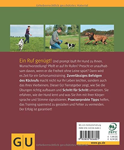 Ist Ihr Vierbeiner ein notorischer Ausreisser? Prescht er unaufhaltsam davon, wenn er die Freiheit ohne Leine spürt? Pfeift er auf Ihre verzweifelten Rufe? Dann wird es Zeit für ein Gehorsamstraining: Das bedingungslose Befolgen des Rückrufs macht nicht nur Ihres, sondern auch Bellos Leben leichter. So können Sie Ihren Hund zum Beispiel rechtzeitig vor einer vielbefahrenen Strasse stoppen, ihn vom Verfolgen von Joggern, Radfahrern und Wildtieren abhalten oder dann nach Hause gehen, wenn es Ihnen passt und nicht allein Ihrem Vierbeiner. Wie der Spaziergang mit Hund und andere Alltagssituationen zur Lust und nicht zur Last werden, verrät die erfolgreiche Hundetrainerin Katharina Schlegl-Kofler im GU Tierratgeber Rückruf-Training für Hunde. Sie erfahren, was Sie fürs Training brauchen und wie Sie es erfolgreich aufbauen. Zahlreiche Tipps helfen, Fehler von Anfang an zu vermeiden und das Training für Hund und Mensch gleichermassen spannend und mit Spass zu gestalten. Der Erfolg ist garantiert!