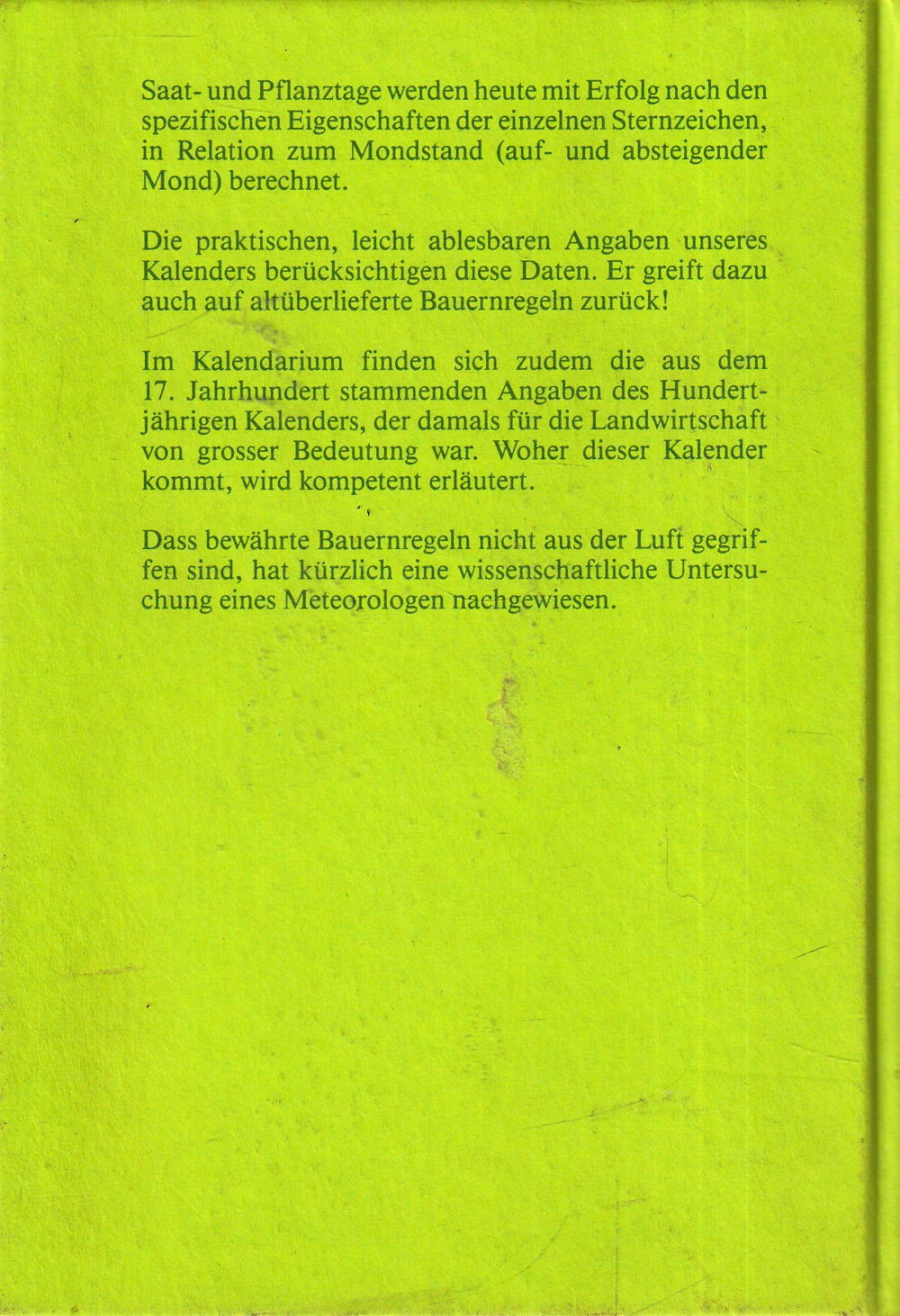 Die praktischen, leicht ablesbaren Angaben unseres Kalenders berücksichtigen diese Daten. Er greift dazu auch auf altüberlieferte Bauernregeln zurück!