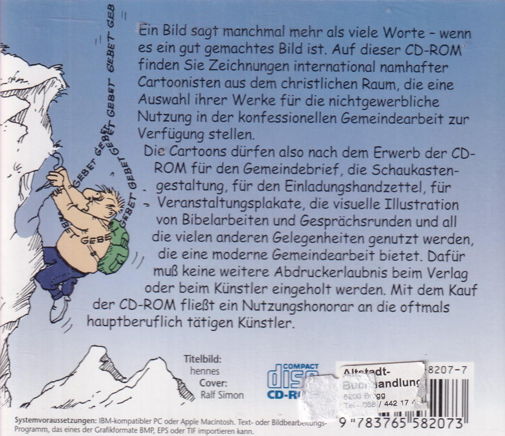 Die hier auf CD-ROM (als Grafikdateien in den Formaten TIF, EPS, BMP) aufbereiteten Cartoons namhafter Karikaturisten und Zeichner dürfen für nichtgewerbliche Zwecke frei benutzt und vervielfältigt werden. Ein unentbehrlicher Vorrat für viele Einsatzmöglichkeiten mit Überblickseiten für den schnellen Zugriff. Cartoons von Mary Chambers, Graham Jeffery, hennes, Ed Koehler, Roy Mitchell, Rob Portlock, Charles M. Schulz, Max Spring und vielen mehr.