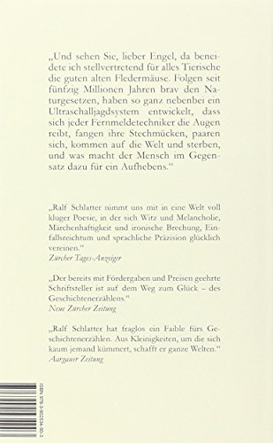 Alfons Liesegang, 62, Seismologe, soeben verstorben, soll einem Engel sein Leben erzählen. Der Clou dabei: So lange er erzählt, so lange darf er nachher noch einmal zurück auf die Welt. Alfons Liesegang beginnt zu reden. Wie lange dauert sein erzähltes Leben? Woran erinnert er sich? Lässt er Unangenehmes aus? Erzählt er ewig – in der Hoffnung auf ewiges Leben?In einem einzigen Monolog, getragen von rhythmischer und bildhafter Sprache, erzählt Liesegang seine Lebensgeschichte. Vom Bruder, der tot zur Welt kam, von der Mutter, die spurlos verschwindet, vom Vater, dem Geologen, der im Keller Steine zerschlägt, von seiner grossen Liebe zur Strahlerin Eva Gutknecht, vom Lied der Rolling Stones über den Teufel und von einer Zwergfledermaus, die wie ein Derwisch durch die ganze Geschichte flattert und ihm am Ende das finale Zeichen gibt.