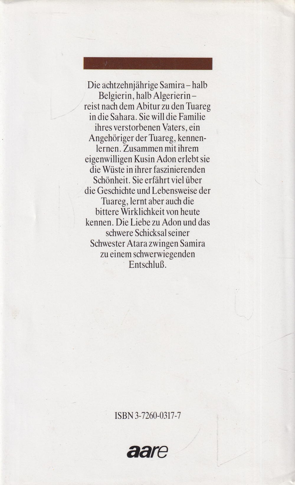 Die achtzehnjährige Samira – halb Belgierin, halb Algerierinreist nach dem Abitur zu den Tuareg in die Sahara. Sie will die Familie ihres verstorbenen Vaters, ein Angehöriger der Tuareg, kennenlernen. Zusammen mit ihrem eigenwilligen Kusin Adon erlebt sie die Wüste in ihrer faszinierenden Schönheit. Sie erfährt viel über die Geschichte und Lebensweise der Tuareg, lernt aber auch die bittere Wirklichkeit von heute kennen. Die Liebe zu Adon und das schwere Schicksal seiner Schwester Atara zwingen Samira zu einem schwerwiegenden Entschluss.
