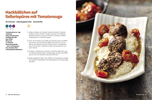 Starten Sie in den Tag mit Kräuter-Ei-Muffins mit Gemüse, füllen Sie zu Mittag Ihre Energiereserven mit Hackbällchen auf Selleriepüree mit Tomatensugo und verwöhnen Sie sich zum Abendessen mit einem Thunfisch-Steak in Sesamkruste und Spinatsalat. Lust auf Nachtisch? Mit diesen Desserts ist Naschen erlaubt!