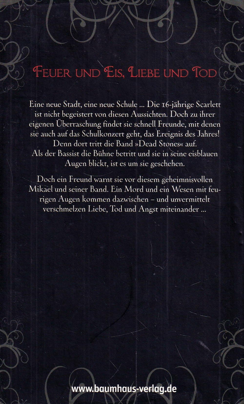 Denn dort tritt die Band "Dead Stones" auf. Als der Bassist die Bühne betritt und sie in seine eisblauen Augen blickt, die sie aus der Menge geradezu herausgesucht zu haben scheinen, ist es um sie geschehen. Doch ein Freund warnt sie vor diesem geheimnisvolllen Mikael und seiner Band. Ein Mord und ein Wesen mit feuerigen Augen kommen dazwischen - und unvermittelt verschmelzen Liebe, Tod und Angst miteinander ...