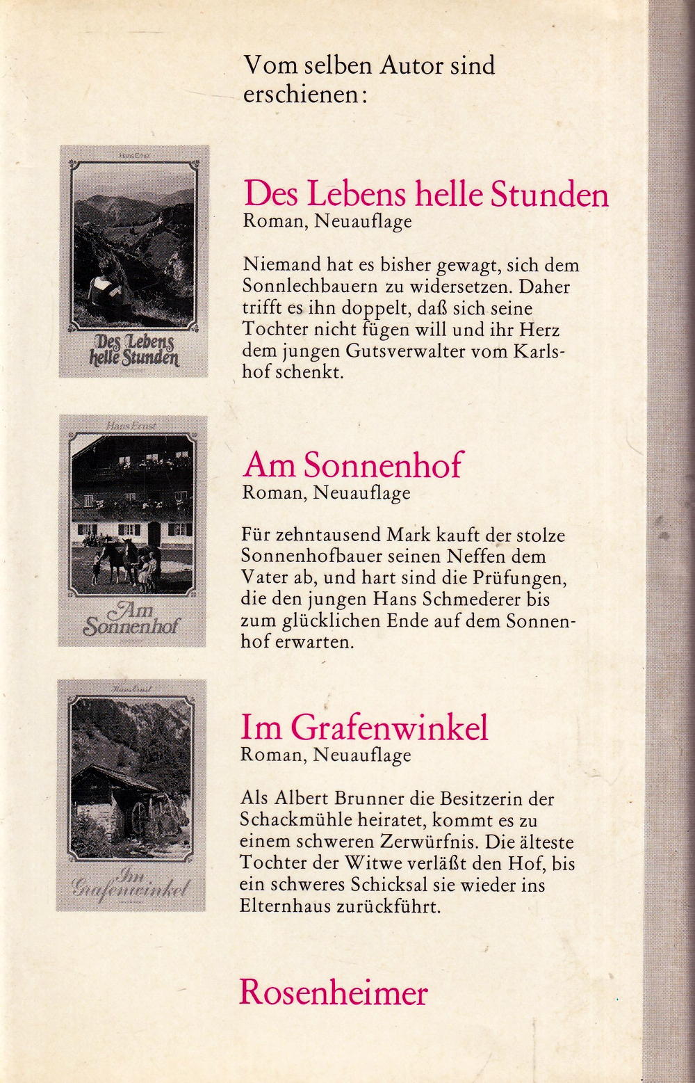 sein ganzes Trachten geht jetzt dahin, das Gerda zugefügte Unrecht wiedergutzumachen. Amalie aber veranlasst in blindem Zorn den Grossknecht, den Rosenhofbauern umzubringen, doch will es der Zufall, dass sie selbst das Opfer des Anschlags wird. Schatten liegen überm Rosenhof. Ganz allmählich nur findet Gerda ins Leben zurück und an der Seite des Jägers Andreas scheint ihr ein neues Glück zu erblühen. Nicht leicht fällt dem Saliter, der auch um sie wirbt, die Erkenntnis, dass Jugend zu Jugend gehört.