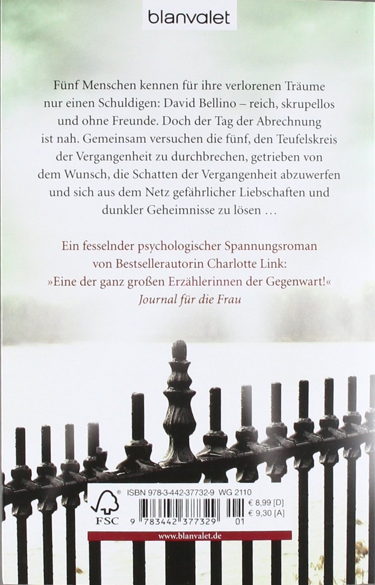 Eine Einladung zur Neujahrsnacht 1990 führt sie nach Jahren wieder zusammen: David Bellino, Chef eines amerikanischen Industrie-Imperiums, vier seiner Freunde aus Jugendtagen und Laura, seine attraktive Geliebte. Doch nach Ferien ist keinem zumute. Sie sind gekommen, um mit David abzurechnen, dessen Ehrgeiz und skrupelloser Egoismus ihre Pläne nachhaltig zerstört hat. Doch noch bevor es zu der grossen Auseinandersetzung kommt, liegt David erschossen in seinem Arbeitszimmer. In stundenlangen Verhören, in dramatischen Aussprachen untereinander, aus quälenden Erinnerungen entstehen wie in einem bizarren Kaleidoskop sechs Lebensbrüder, sechs Schicksale, die die Sehnsucht nach Liebe und Freundschaft verband - und zerstörte. Zwischen dem Berlin des Zweiten Weltkriegs, einem englischen Nobelinternat den Gossen und Prachtvierteln von New York und London und den romantischen Gassen Wiens spinnt Charlotte Link ein Netz fataler, romantischer und angstvoller Beziehungen. Mit Sensibilität und scharfem Instinkt zeigt sie die Emotionen, die hinter unserem Handeln liegen. So gelang ihr ein spannender Zeitroman, der nicht nur ein Verbrechen, sondere auch die verdrängten Ursachen dafür ans Licht bringt.