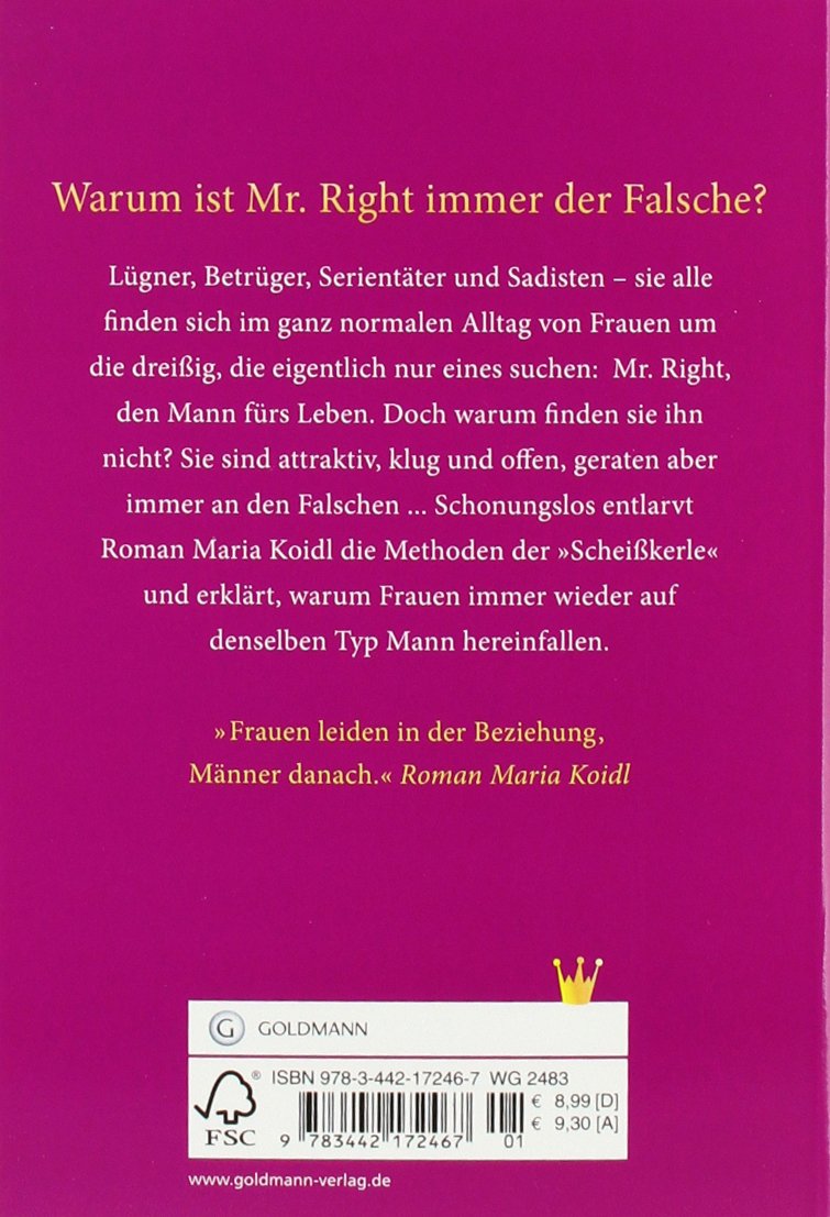 Lügner, Betrüger, Serientäter und Sadisten – sie alle finden sich im ganz normalen Alltag von Frauen um die dreißig, die eigentlich nur eines suchen: Mr. Right, den Mann fürs Leben. Doch warum finden sie ihn nicht? Sie sind attraktiv, klug und offen, geraten aber immer an den Falschen. Schonungslos entlarvt Roman Maria Koidl die Methoden der „Scheißkerle“ und erklärt, warum Frauen immer wieder auf den selben Typ Mann hereinfallen.