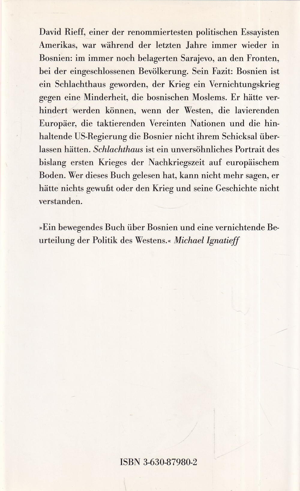 »Ein bewegendes Buch über Bosnien und eine vernichtende Beurteilung der Politik des Westens. « Michael Ignatieff