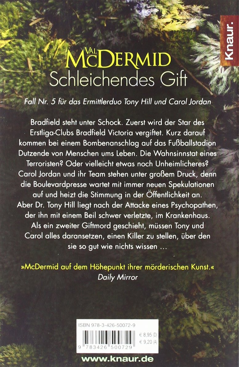 Carol Jordan und ihr Major Incident Team (MIT) stehen unter grossem Druck, denn die Boulevardpresse wartet mit immer neuen Spekulationen auf und heizt die Stimmung in der Öff entlichkeit an. Aber Dr. Tony Hill liegt nach der Attacke eines Psychopathen, der ihn mit einem Beil schwer verletzte, im Krankenhaus. Als ein zweiter Giftmord geschieht, müssen die beiden alles daransetzen, einen Killer zu stellen, über den sie so gut wie nichts wissen ...