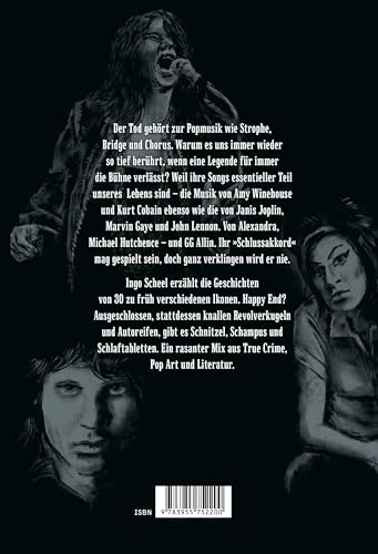 Was haben so unterschiedliche Künstler wie Alexandra, GG Allin und Michael Hutchence gemeinsam? Sie sind alle tot. Und niemand von ihnen starb an Altersschwäche. Was die Menschheit bei einem selbst – in hoffentlich erst vielen Jahren – achselzuckend zur Kenntnis nehmen wird, erschüttert im Falle der Popstars Millionen: Der Tod. Ehrliche Trauer mischt sich mit Sensationslust, der Kontrast zwischen der (mehr oder weniger) fröhlichen, lebensbejahenden, glamourösen Welt der Popmusik und dem unwiderruflichen Ende könnte grösser nicht sein. Erschüttert und fasziniert lesen wir die Nachrufe und hören die Musik des oder der Verblichenen ab sofort mit anderen Ohren. Unsterblich sein und trotzdem tot: Diesen Spagat bekommen nur ganz wenige hin. Vor ein paar Jahren veröffentlichte eine medizinische Fachzeitschrift eine Studie, dernach Popstars früher sterben als Krethi und Plethi. Wir haben es geahnt. Aber warum? Weshalb traten Menschen, die unseren Traum lebten, vor ihrer Zeit ab? Wie verzweifelt waren sie in ihren Villen, zwischen den goldenen Schallplatten und den Champagnerflaschen? Haben sie einmal zu oft am Tisch gerochen oder war ein Neider mit Schusswaffe todesursächlich? Welche Dämonen, Manager und/oder Ex-Partner: innen trieben unsere Idole ins ewige Nichts? Und starb Keith Moon tatsächlich an einem Schnitzel und 35 Schlaftabletten?