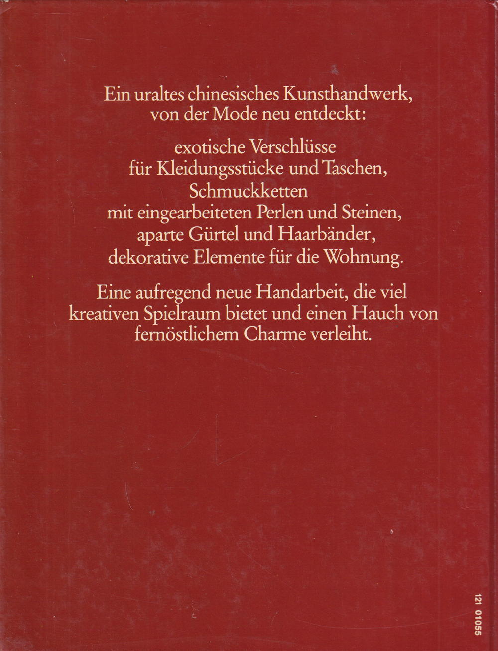 Ein uraltes chinesisches Kunsthandwerk, von der Mode neu entdeckt: exotische Verschlüsse für Kleidungsstücke und Taschen, Schmuckketten mit eingearbeiteten Perlen und Steinen, aparte Gürtel und Haarbänder, dekorative Elemente für die Wohnung.