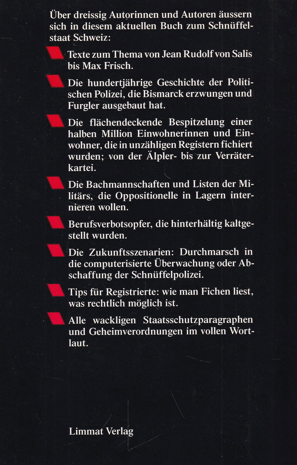 Über dreissig Autorinnen und Autoren äussern sich in diesem aktuellen Buch zum Schnüffelstaat Schweiz: