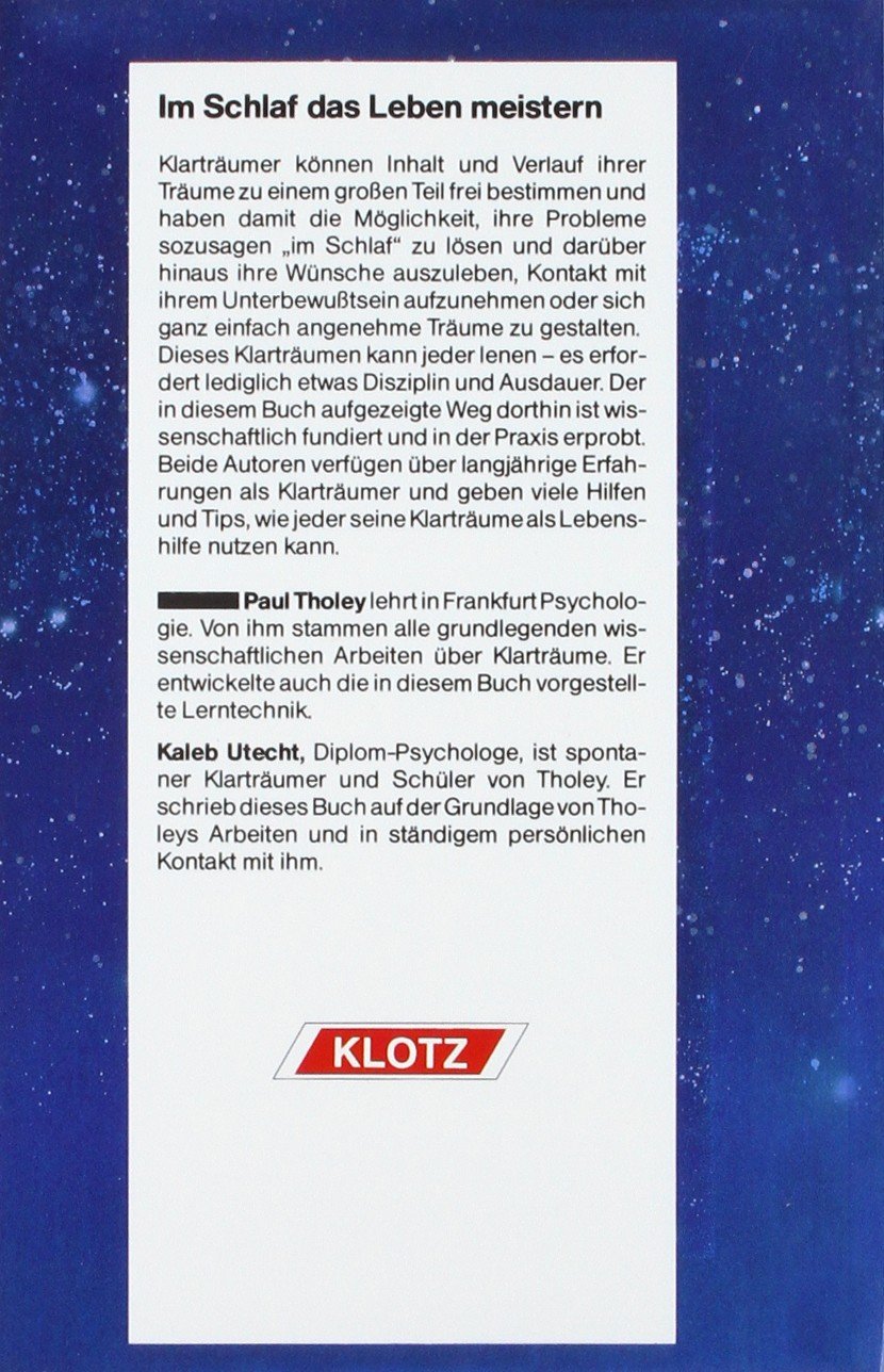 Klarträumer können Inhalt und Verlauf ihrer Träume zu einem großen Teil frei bestimmen und haben damit die Möglichkeit, ihre Probleme sozusagen im Schlaf zu lösen und darüber hinaus ihre Wünsche auszuleben, Kontakt mit ihrem Unterbewußtsein aufzunehmen oder sich ganz einfach angenehme Träume zu gestalten. Dieses Klarträumen kann jeder lernen - es erfordert lediglich etwas Disziplin und Ausdauer. Der in diesem Buch aufgezeigte Weg dorthin ist wissenschaftlich fundiert und in der Praxis erprobt. Beide Autoren verfügen über langjährige Erfahrungen als Klarträumer und geben viele Hilfen und Tips, wie jeder seine Klarträume als Lebenshilfe nutzen kann.
