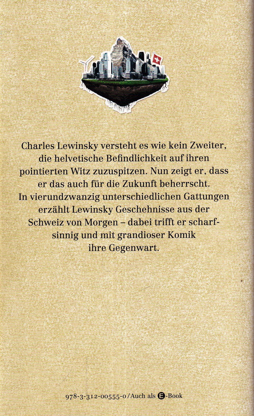 Charles Lewinsky versteht es wie kein zweiter, die Befindlichkeit der Schweiz auf ihren pointierten Witz zuzuspitzen. Nun beschreibt er in 24 unterschiedlichen Textarten ihre Zukunft – und trifft mit grandioser Komik ihre Gegenwart. So werden im Jahr 2064 die Besucher des Freilichtmuseums Ballenberg 2 staunen, was für ein kurioses Land das früher einmal war; dagegen steht die Abspaltung der Urkantone von der Restschweiz im Jahr 2072 unmittelbar bevor. Die Geschichten sprühen vor übermütigem Vergnügen daran, die gegenwärtige Entwicklung Helvetiens und seiner Politik in eine gnadenlose Konsequenz zu führen. Auf Lewinskys virtuose Feder und seine Kunst der Satire werden wir auch in Zukunft noch lange angewiesen bleiben.