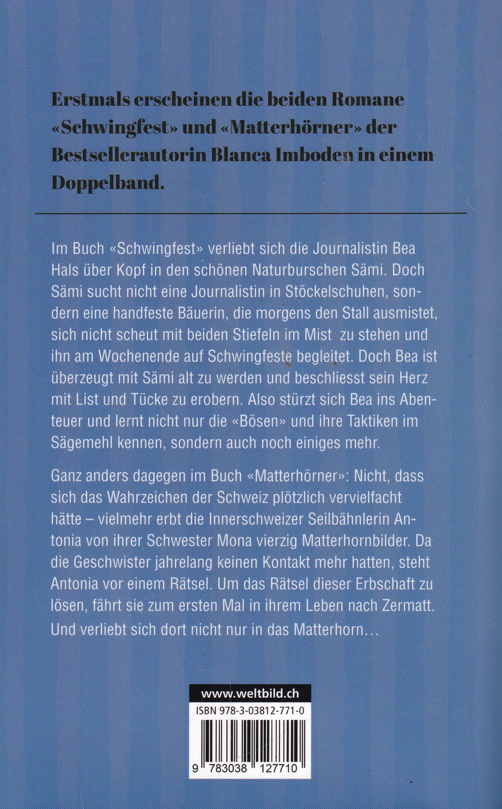 Ganz anders dagegen im Buch «Matterhörner»: Nicht, dass sich das Wahrzeichen der Schweiz plötzlich vervielfacht hätte – vielmehr erbt die Innerschweizer Seilbähnlerin Antonia von ihrer Schwester Mona vierzig Matterhornbilder. Da die Geschwister jahrelang keinen Kontakt mehr hatten, steht Antonia vor einem Rätsel. Um das Rätsel dieser Erbschaft zu lösen, fährt sie zum ersten Mal in ihrem Leben nach Zermatt.